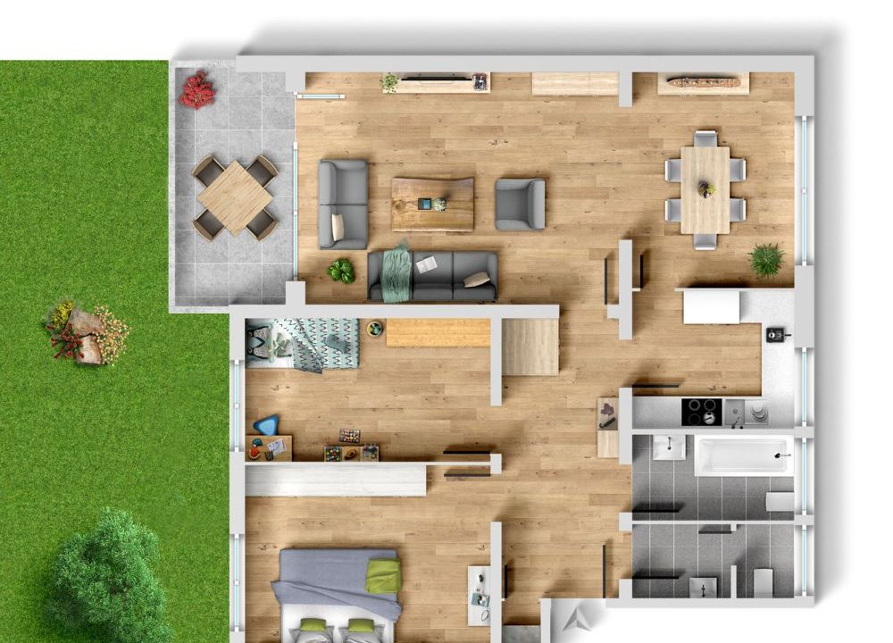 Viel Platz zum Leben und Quality-Time bietet diese 3,5-4 Zimmerwohnung mit einem schönen Süd-West-Balkon und den Blick „“ins Grüne“. Hier haben Sie die Möglichkeit eine Treppe vom Balkon in Ihren Ziergarten führen zu lassen. Dieser beinhaltet die gesamte Wohnungsbreite und 4 m in der Tiefe.
