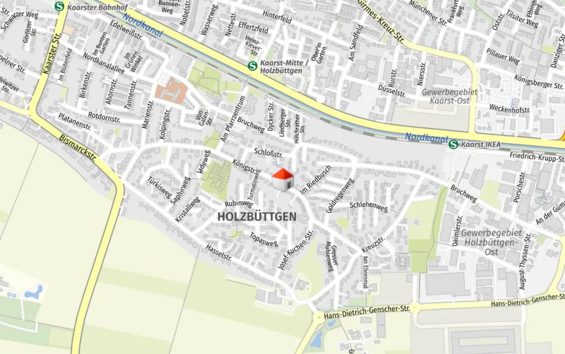 Die Lage der Wohnung ist besonders vorteilhaft: Das Stadtzentrum von Kaarst ist lediglich 5,34 km entfernt und bietet eine breite Palette an Einkaufsmöglichkeiten, Restaurants und Freizeiteinrichtungen. Für Pendler erweist sich die Nähe zur Autobahn als äußerst nützlich, da diese nur 1,11 km entfernt ist und somit eine schnelle Verbindung zu umliegenden Städten und Regionen gewährleistet.