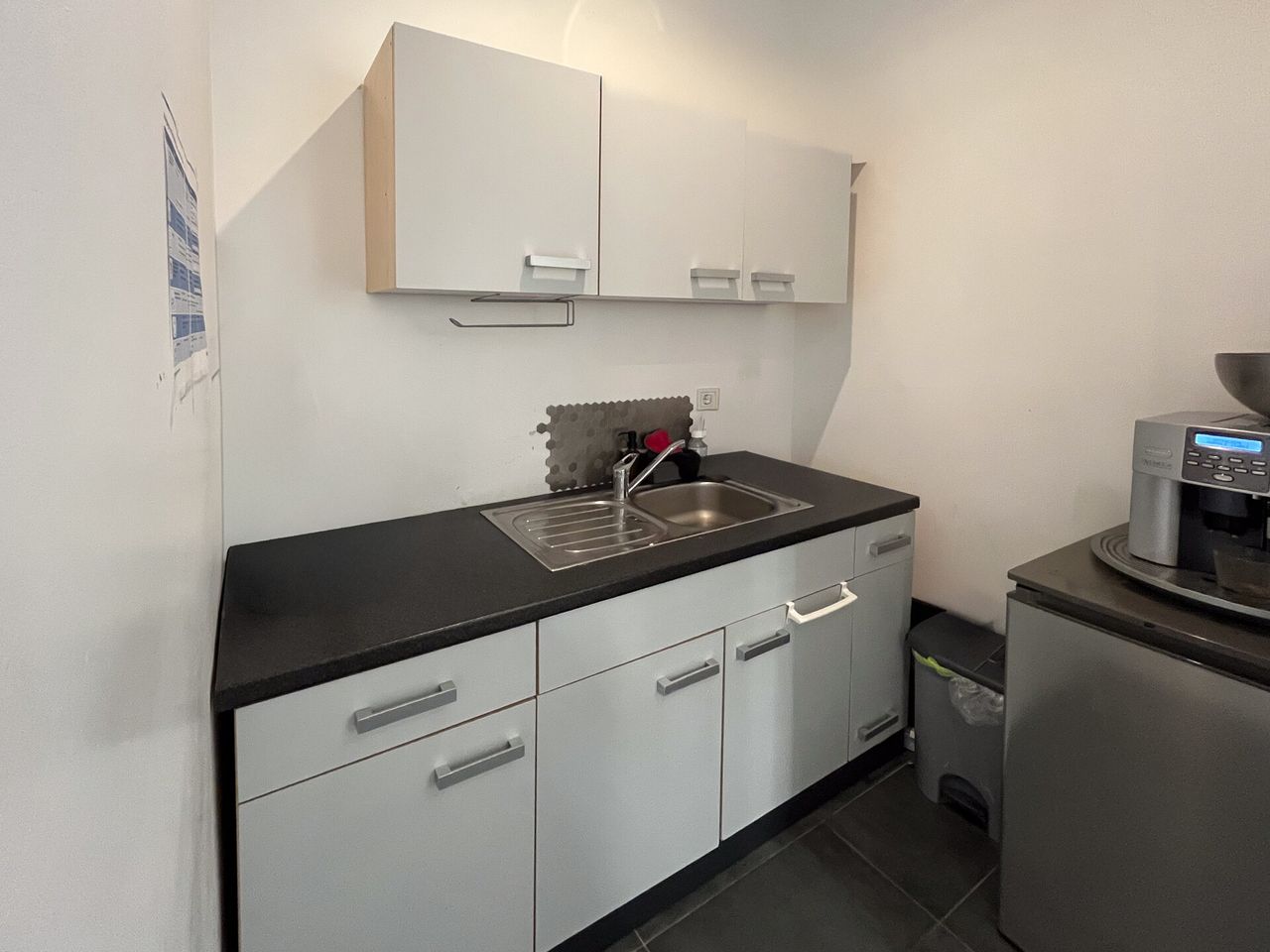 Für ausreichend Stauraum sorgen ein Kellerraum sowie ein praktischer Abstellraum mit Waschmaschinenanschluss. Ein besonderes Highlight ist der Freiplatz im Hinterhof in Verbindung mit der eigenen Terrasse, die vielseitige Nutzungsmöglichkeiten eröffnet – etwa als Aufenthaltsbereich für Mitarbeiter oder für repräsentative Zwecke. Besonders funktional ist die Ausstattung jedes Büroraums mit einem eigenen Wasserzu- und -abfluss, wodurch sich die Immobilie auch hervorragend für Praxis-, Kosmetik- oder andere Dienstleistungsbetriebe eignet. Eine ansprechend gestaltete Mitarbeiterküche rundet das Angebot ab und sorgt für ein angenehmes Arbeitsumfeld.