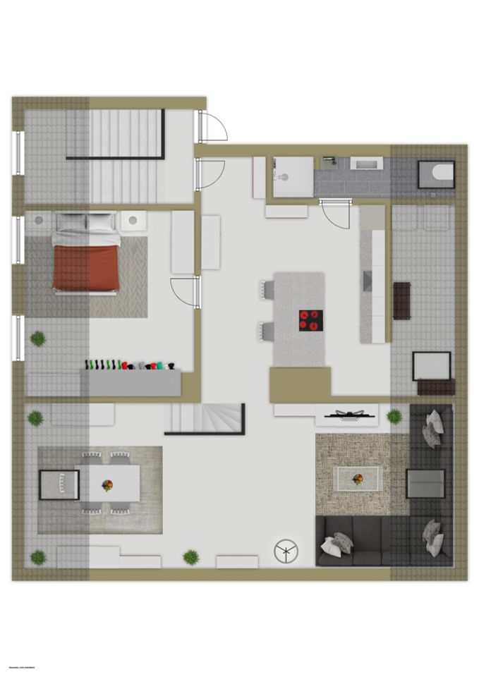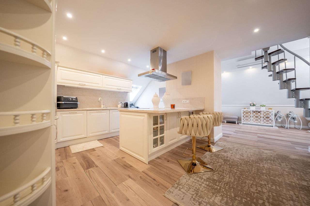 Das Wohnzimmer lädt zum Entspannen ein, das Schlafzimmer bietet Ruhe und Rückzug, und die moderne Küche lässt keine Wünsche offen. Das stilvolle Badezimmer überzeugt mit hochwertigen Armaturen und zeitlosem Design.