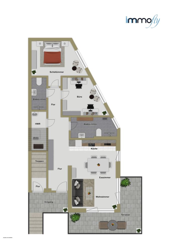 – Zeitgemäße Ausstattung mit hochwertigen Bodenbelägen, Sanitärobjekten und elektrischen Rollläden