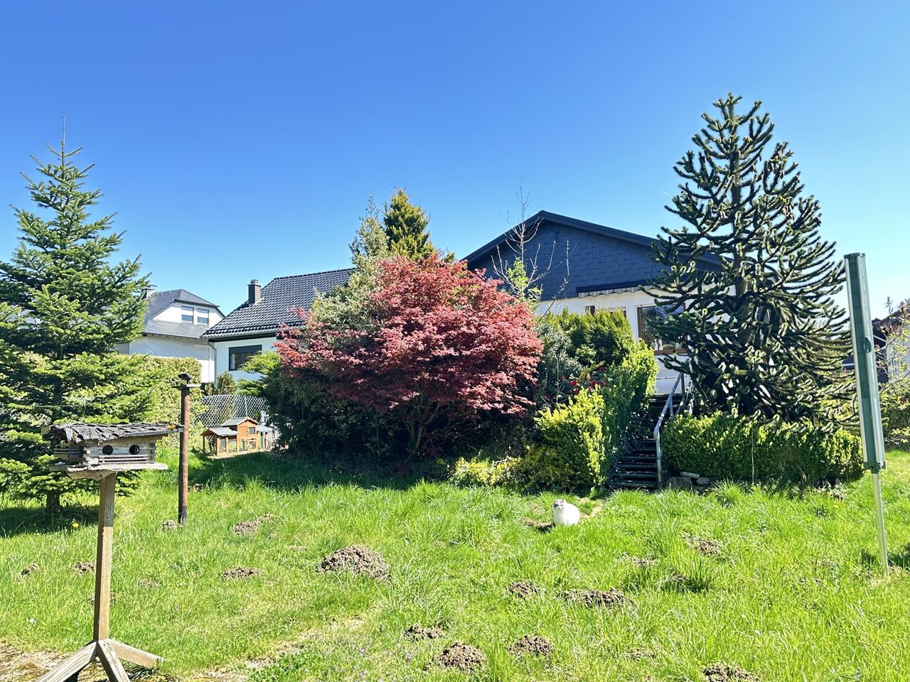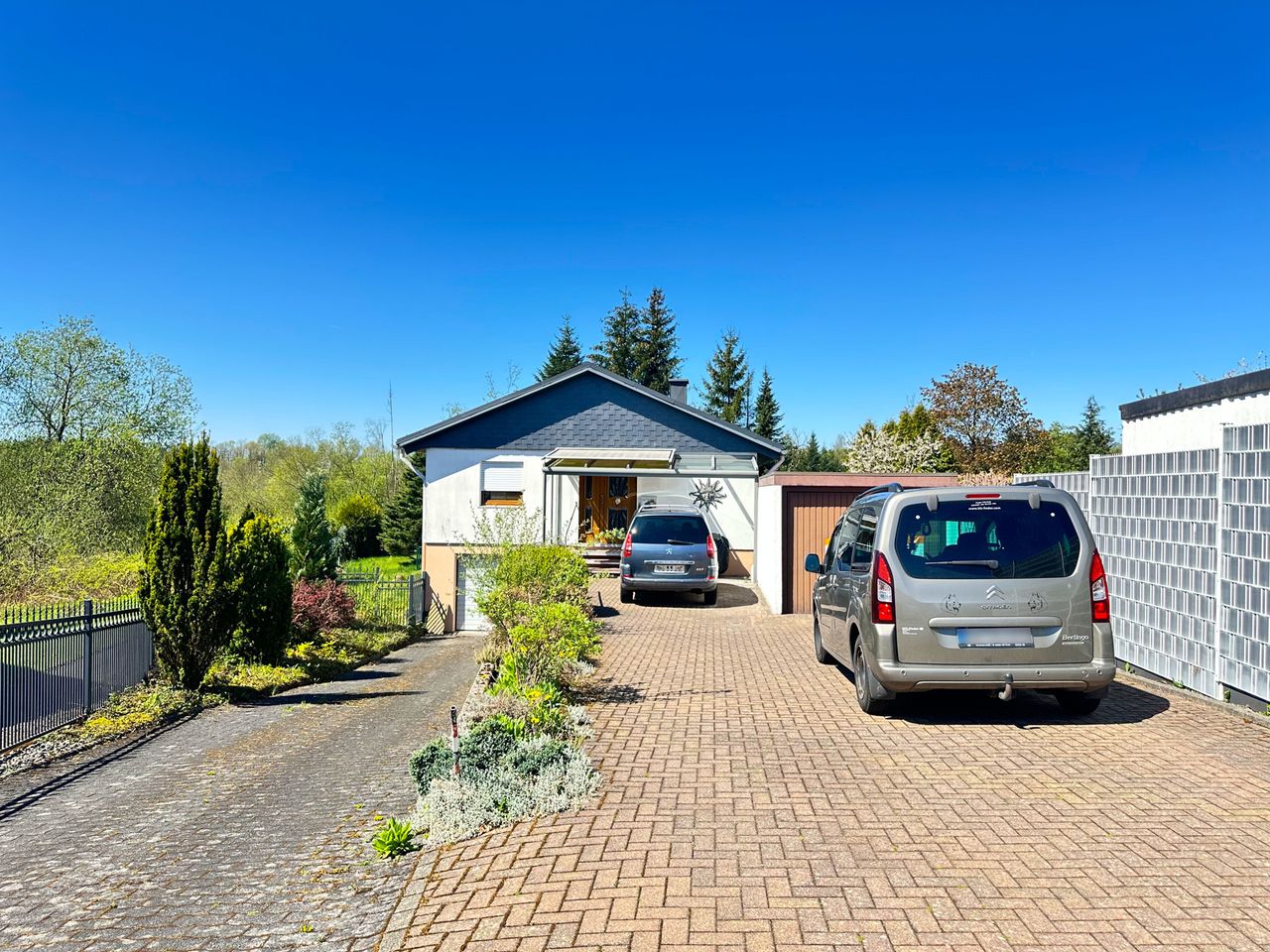 Dieses einladende Wohnhaus im beliebten Bungalowstil der renommierten Firma Fingerhut bietet den idealen Rückzugsort für Paare, die Wert auf Ruhe und Wohnkomfort legen. Nach dem Erwerb wurde das Objekt durch die Eigentümer renoviert und präsentiert sich heute in einem gepflegten Zustand. Das modernisierte Badezimmer verfügt bereits über eine Dusche mit flacher Einstiegshöhe. Herzstück des Hauses ist der großzügige Wohn- und Essbereich, von dem aus Sie direkten Zugang zur sonnigen Terrasse haben. Von hier genießen Sie den Ausblick auf das weitläufige, pflegeleicht angelegte Grundstück, das durch einen Zaun eingefriedet ist. Ein Gartenhaus eröffnet vielfältige Nutzungsmöglichkeiten. Im Untergeschoss stehen Ihnen zusätzliche Nutz- und Abstellflächen sowie eine praktische Waschküche mit Toilette und Waschbecken und ein Gästezimmer zur Verfügung. Abgerundet wird das attraktive Gesamtbild durch zwei Garagen, die ausreichend Platz für Ihre Fahrzeuge bieten. Dieses gemütliche Zuhause überzeugt mit einer guten Raumaufteilung und einer Umgebung, in der man sich sofort wohlfühlt. Es eignet sich ideal für Paare, die auf der Suche nach einem im Erdgeschoss ebenerdigen Zuhause mit viel Platz im Innen- und Außenbereich sind.