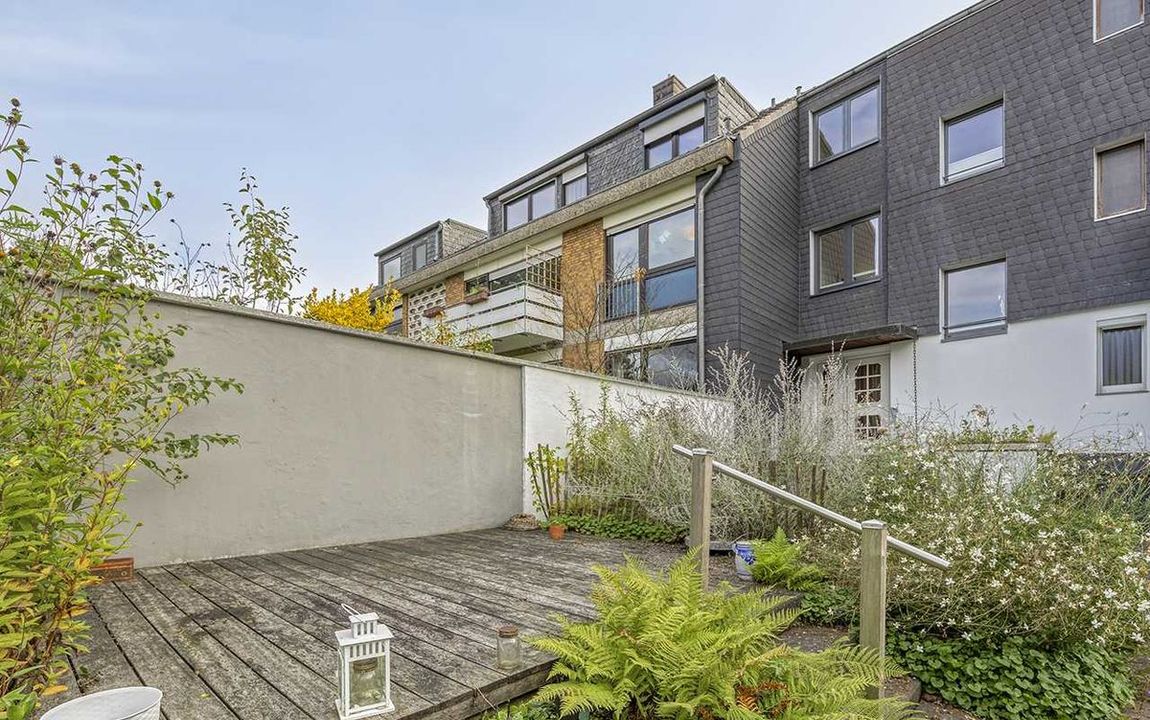 Der weitläufige, wunderschöne Garten ist von der Straße aus nicht einsehbar und verfügt über eine großzügige Holzterrasse und viel Grünfläche mit umliegenden Sträuchern und Bäumen.