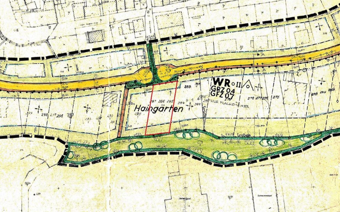 Ein Bebauungsplan liegt vor und gibt den Rahmen für die zukünftige Bebauung vor.
