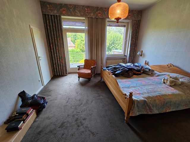 Im 1. OG 3 Zimmer, davon ein schönes Erkerzimmer, und ein sehr großzügiges Bad mit Wanne, Dusche und Bidet. Auf dem Balkon/Terrasse am Schlafzimmer lässt sich u.a. der Abend ausklingen.