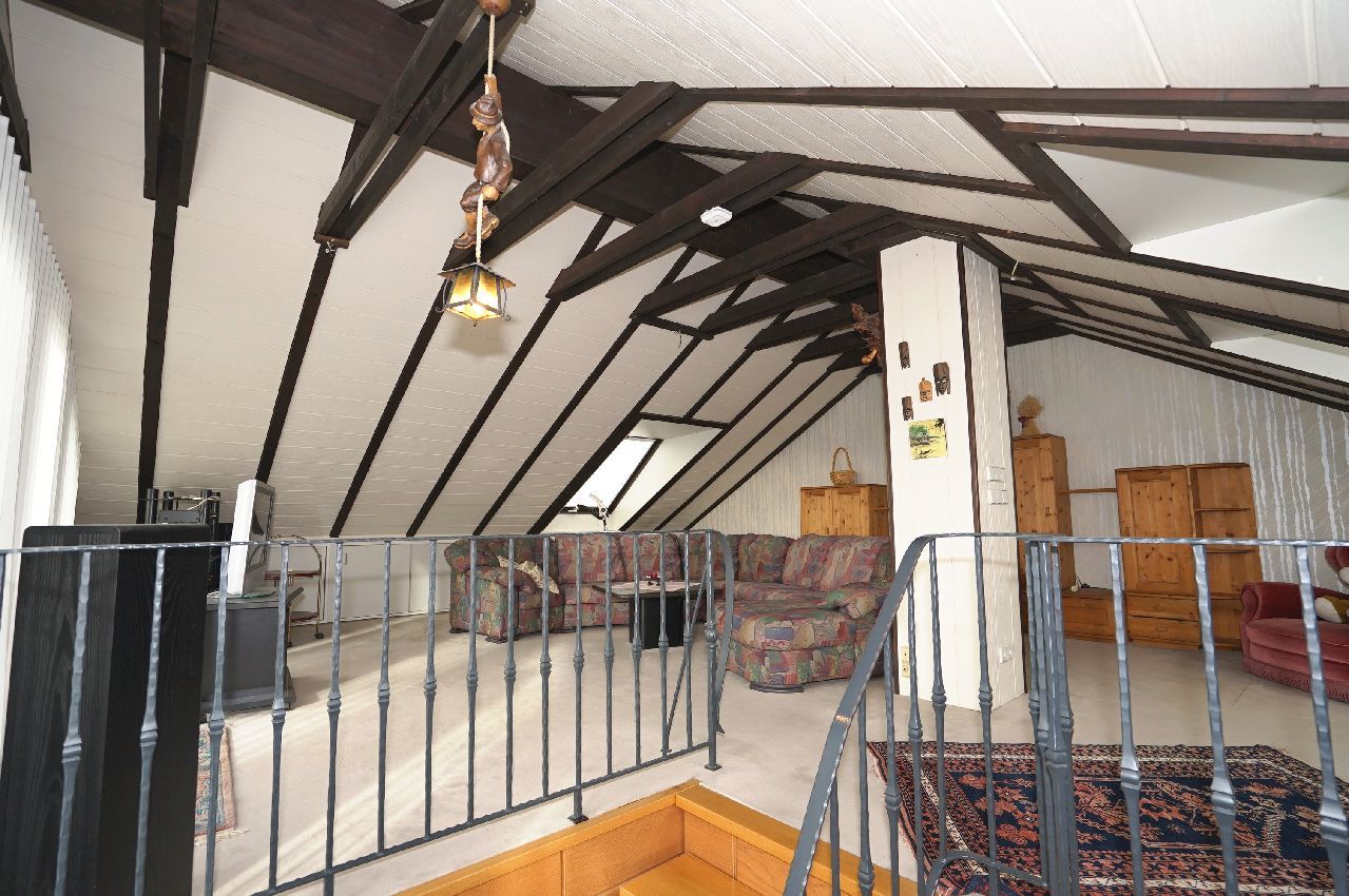 Das 1989 aufgestockte Dachgeschoss ist baurechtlich als Speicherraum genehmigt, und deshalb in unserer Wohnflächenangabe nicht enthalten. Der vorhandene wohnliche Ausbau lässt dem zukünftigen Erwerber, u. a. auch aufgrund der Dachflächenfenster und der großen Fensterfront im Giebelbereich, viele Nutzungsvarianten offen.