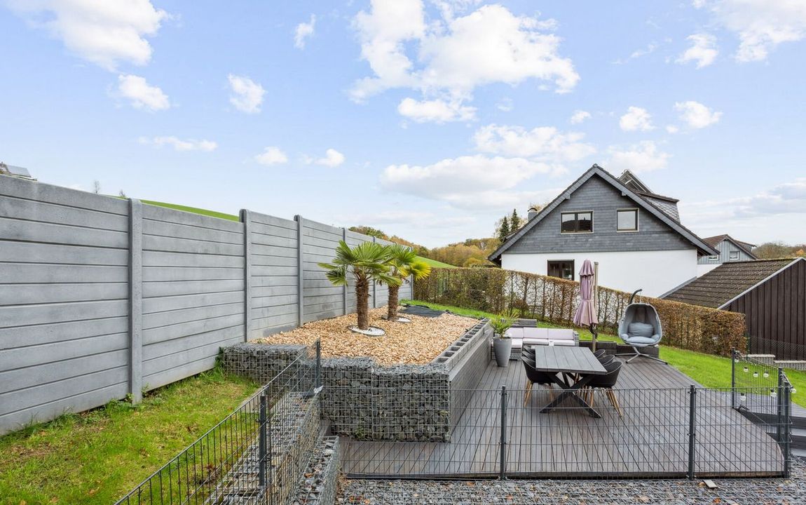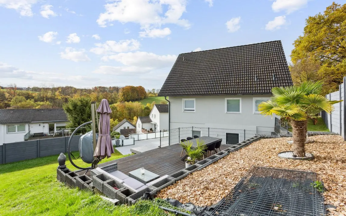Dieses freistehende Einfamilienhaus präsentiert sich als harmonische Verbindung aus modernem Wohnkomfort, stilvoller Ausstattung und einem ideal durchdachten Raumkonzept. Die im Jahr 2022 umfassend und hochwertig durchgeführte Sanierung hat ein Zuhause geschaffen, das sowohl funktional als auch ästhetisch auf ganzer Linie überzeugt. Das ca. 686 m² große Grundstück grenzt unmittelbar an eine weitläufige Weide und bietet damit ein Höchstmaß an Ruhe und Privatsphäre. Drei großzügige Terrassen mit Ausrichtung nach Süden und Westen schaffen ideale Orte zum Entspannen, Sonnen und Genießen. Ergänzt wird das Anwesen durch eine rund 120 m² große, gepflasterte Stellfläche, die ausreichend Platz für mehrere Fahrzeuge bietet – inklusive einer Wallbox für das komfortable Laden von E-Fahrzeugen. Auf etwa 160 m² Wohnfläche erwartet Sie ein durchdachtes Raumangebot mit sechs hellen, ansprechend geschnittenen Zimmern, zwei modernen Badezimmern sowie einem Gäste-WC in exklusiver Ausstattung. Im Erdgeschoss empfängt Sie ein großzügiger Eingangsbereich mit Platz für eine einladende Garderobe. Hier befinden sich zudem ein weiteres Duschbad, ein Fitnessraum, ein stilvoll gestalteter Kinoraum sowie ein zusätzlicher Lagerraum – perfekt für Hobby, Erholung und praktische Nutzung. Im 1. Obergeschoss überzeugt das Haus mit einem weitläufigen Wohn- und Essbereich, der sich harmonisch mit der angrenzenden Design-Küche verbindet. Diese ist hochwertig ausgestattet und bietet direkten Zugang zur praktischen Waschküche sowie zu einem weiteren Gäste-WC. Das Dachgeschoss beherbergt drei gemütliche Schlafzimmer sowie ein helles Badezimmer mit Dusche und Badewanne – ideal für Familien, Gäste oder individuelles Wohnen.