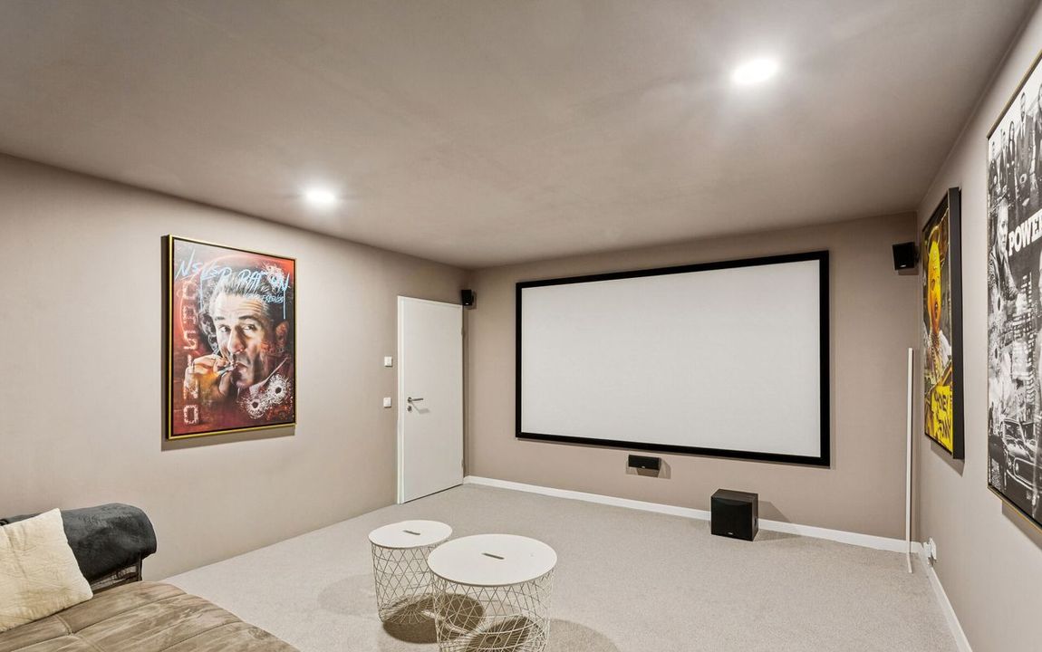 Besonders hervorzuheben ist die exklusive Design-Küche, ausgestattet mit modernster Premium-Technik. Das Quooker Pro 3 System liefert auf Knopfdruck gefiltertes, sprudelndes, kochendes oder normales Trinkwasser und setzt ein klares Highlight im täglichen Komfort. Ebenso beeindruckend ist das hauseigene Heimkino, das unvergessliche Filmabende garantiert.