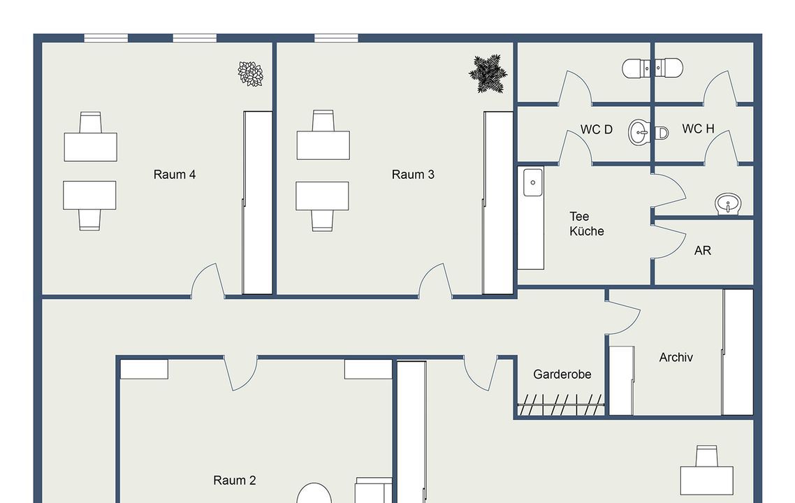 Getrennte WCs Damen/Herren, Abstellraum und einen Archivraum sowie Garderobendiele.