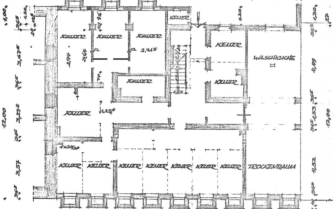 Das Gebäude ist voll unterkellert. Im Kellergeschoss befinden sich die separaten Mieterkeller sowie die Möglichkeit, einen gemeinschaftlichen Wasch- und Trockenraum einzurichten.