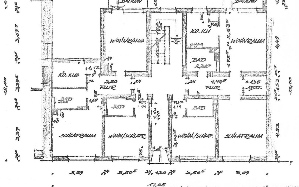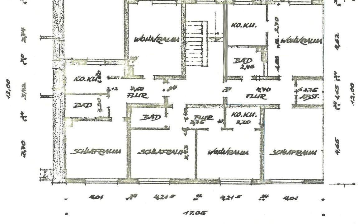 Außenwände: Kellergeschoss ca. 35,5 cm Mauerwerk, Wohngeschosse ca. 30 cm Mauerwerk