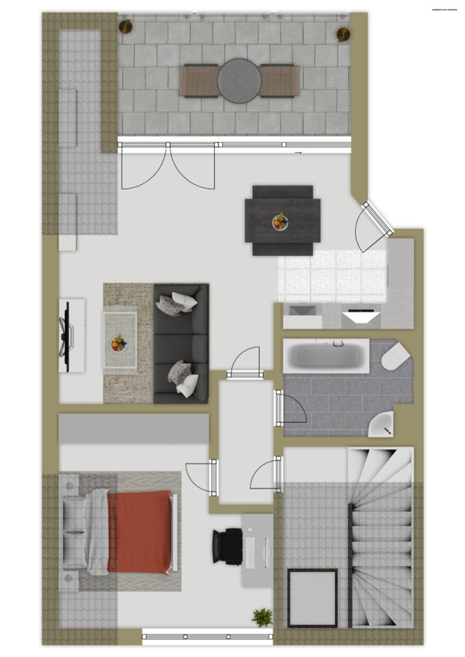 Auf ca. 53 m² entfaltet sich ein durchdachtes und lichtdurchflutetes Wohnkonzept. Das Schlafzimmer ist ein Rückzugsort voller Gemütlichkeit, ideal zum Entspannen und Abschalten. Das innenliegende Badezimmer mit Badewanne lädt zu wohltuenden Wohlfühlmomenten ein und macht den Alltag zu einem kleinen Luxus.