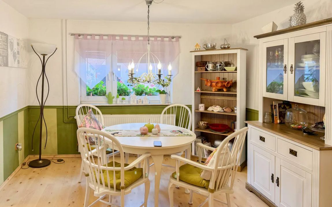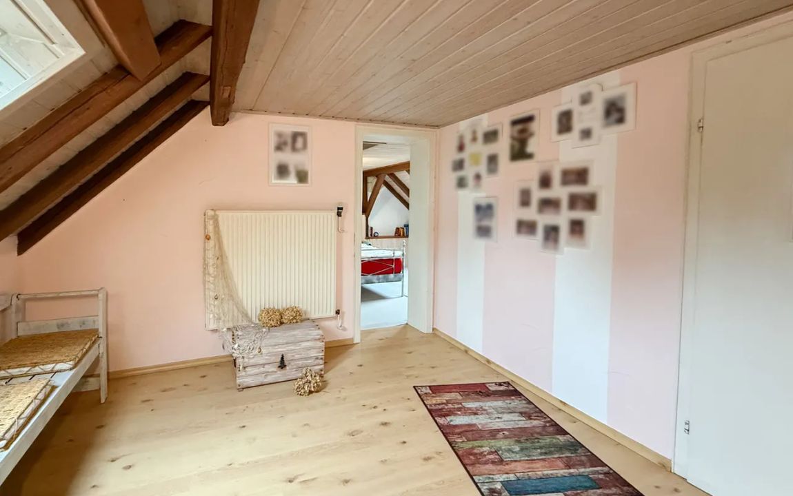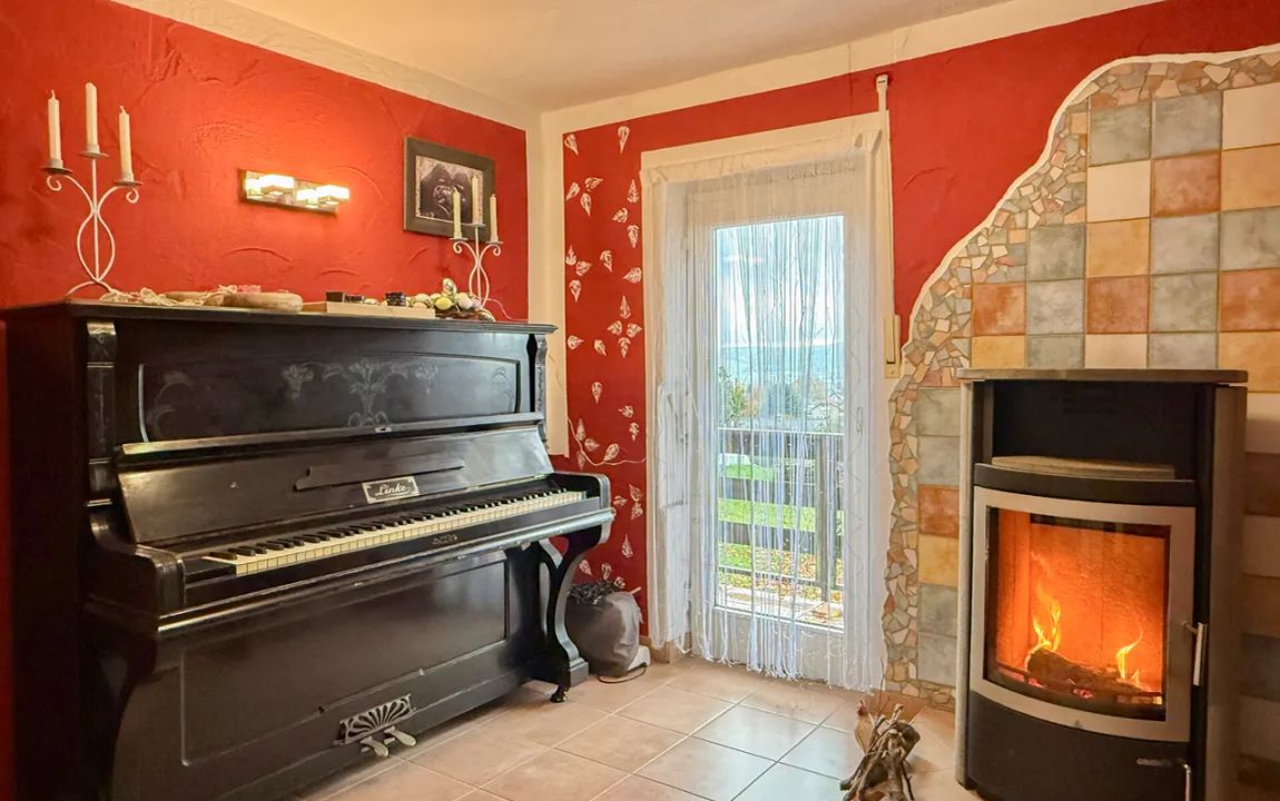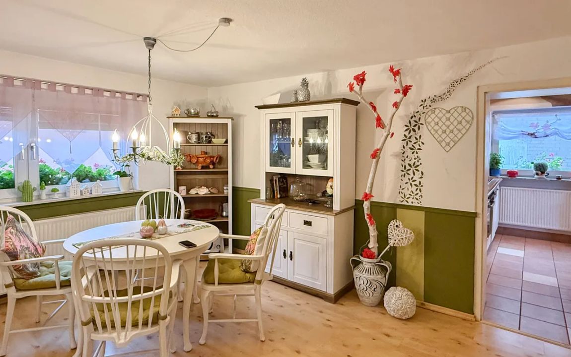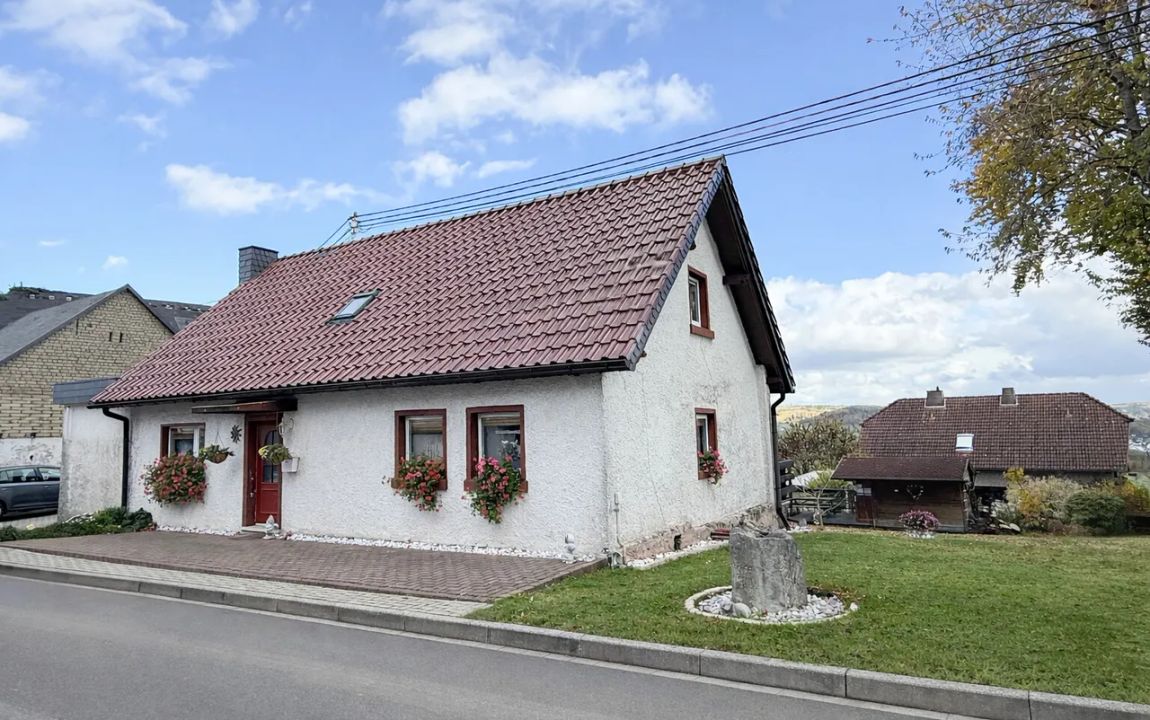 Dieses charmante Einfamilienhaus aus ca. 1914 befindet sich in herrlicher Höhenlage auf einem großzügigen Grundstück von rund 1.219 m², das sich bei Bedarf auch in einen separaten Bauplatz aufteilen ließe. Das Haus präsentiert sich gepflegt und bietet eine Wohnfläche von etwa 132,41 m², die sich über Erd- und Dachgeschoss erstreckt. Im Erdgeschoss empfängt Sie ein großer Wohnbereich mit Kaminofen, von dem aus Sie sowohl den Balkon als auch den Garten erreichen. Das Esszimmer liegt direkt neben der Küche, welche ebenfalls über einen Zugang zum Balkon verfügt. Ein helles Tageslichtbad mit Wanne und Dusche sowie ein weiteres Zimmer, vervollständigen diese Ebene. Die Raumaufteilung ermöglicht komfortables Wohnen auf einer Ebene und eignet sich damit auch hervorragend für das Wohnen im Alter. Im Dachgeschoss stehen zwei Schlafzimmer und ein kleiner Raum, der sich als Büro oder Abstellfläche eignet, zur Verfügung. Der Spitzboden bietet zusätzlichen Stauraum. Eine Einzelgarage mit elektrischem Tor sowie ein Kriechkellerraum sind ebenfalls vorhanden. Das gepflegte Grundstück mit Baumbestand, Gartenhäuschen und beeindruckendem Fernblick macht dieses Zuhause besonders attraktiv. Der Ort selbst besitzt eine eigene Kindertagesstätte und eine Grundschule – ideal für Familien.