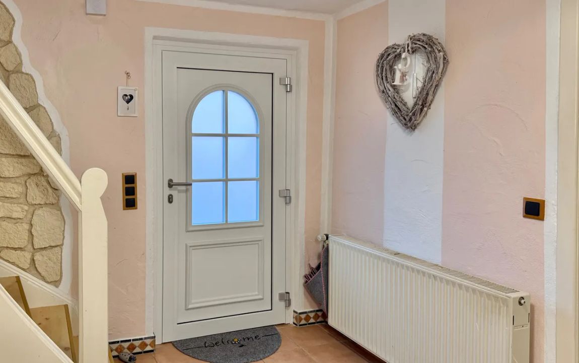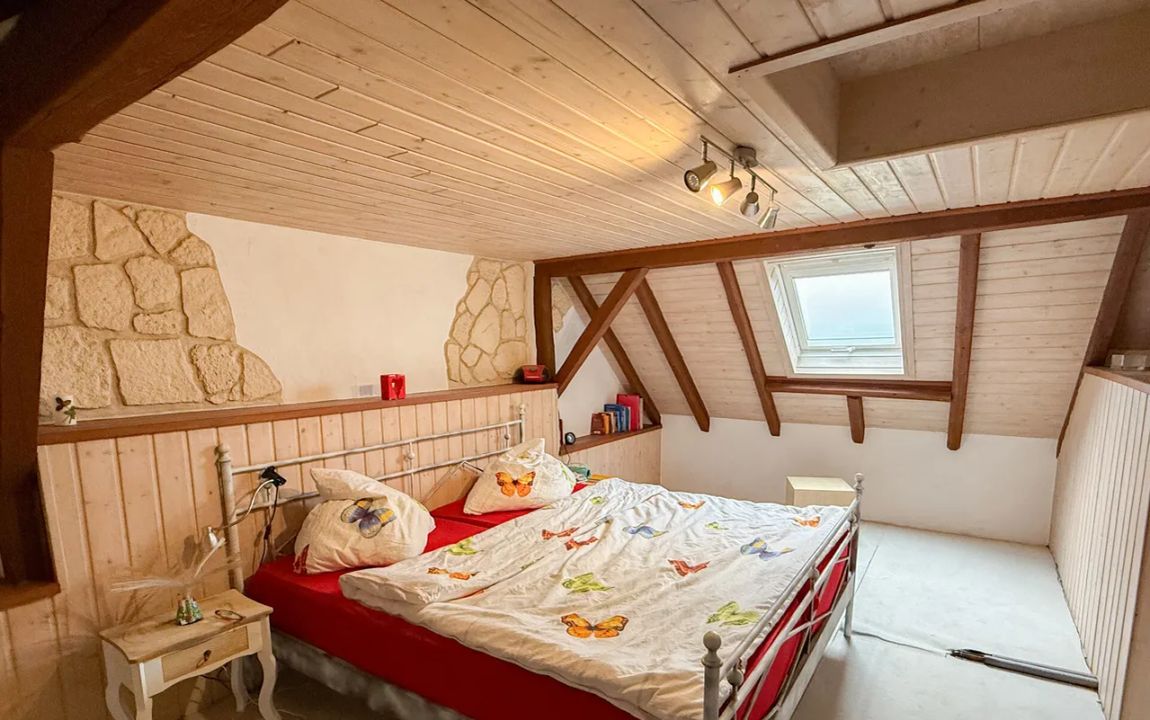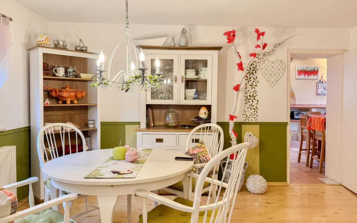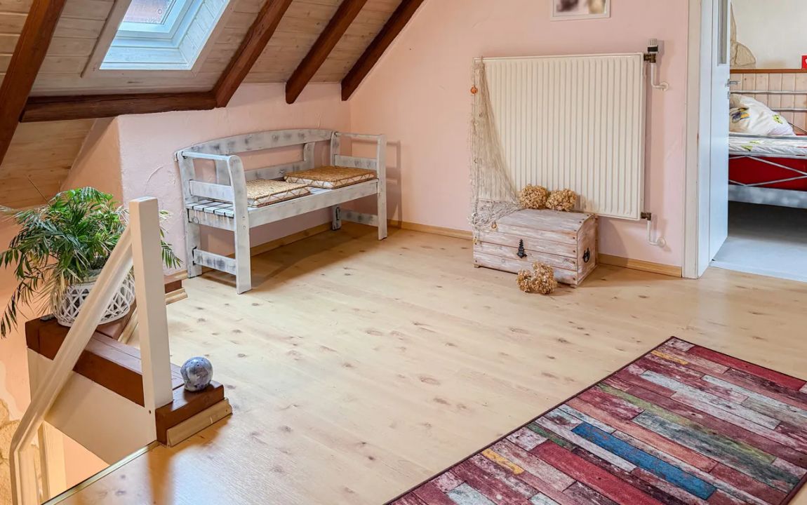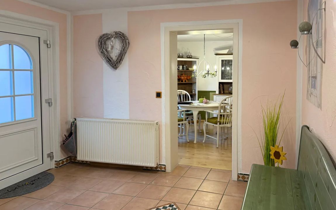 Dieses charmante Einfamilienhaus aus ca. 1914 befindet sich in herrlicher Höhenlage auf einem großzügigen Grundstück von rund 1.219 m², das sich bei Bedarf auch in einen separaten Bauplatz aufteilen ließe. Das Haus präsentiert sich gepflegt und bietet eine Wohnfläche von etwa 132,41 m², die sich über Erd- und Dachgeschoss erstreckt. Im Erdgeschoss empfängt Sie ein großer Wohnbereich mit Kaminofen, von dem aus Sie sowohl den Balkon als auch den Garten erreichen. Das Esszimmer liegt direkt neben der Küche, welche ebenfalls über einen Zugang zum Balkon verfügt. Ein helles Tageslichtbad mit Wanne und Dusche sowie ein weiteres Zimmer, vervollständigen diese Ebene. Die Raumaufteilung ermöglicht komfortables Wohnen auf einer Ebene und eignet sich damit auch hervorragend für das Wohnen im Alter. Im Dachgeschoss stehen zwei Schlafzimmer und ein kleiner Raum, der sich als Büro oder Abstellfläche eignet, zur Verfügung. Der Spitzboden bietet zusätzlichen Stauraum. Eine Einzelgarage mit elektrischem Tor sowie ein Kriechkellerraum sind ebenfalls vorhanden. Das gepflegte Grundstück mit Baumbestand, Gartenhäuschen und beeindruckendem Fernblick macht dieses Zuhause besonders attraktiv. Der Ort selbst besitzt eine eigene Kindertagesstätte und eine Grundschule – ideal für Familien.