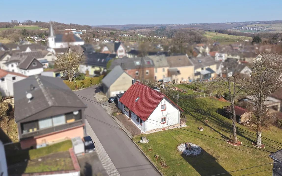 Die Immobilie liegt in einem ruhigen Mischgebiet einer Westerwaldgemeinde nahe Hachenburg. Kindergarten und Grundschule befinden sich direkt im Ort und sind bequem zu Fuß erreichbar. In Hachenburg, etwa fünf Kilometer entfernt, stehen zahlreiche Einkaufsmöglichkeiten, Ärzte, Apotheken sowie weiterführende Schulen und vielfältige Freizeitangebote zur Verfügung. Zusätzlich bietet das nahegelegene Nistertal mit einem Rewe-Markt eine praktische Einkaufsmöglichkeit für den täglichen Bedarf. Eine regelmäßige Busverbindung sorgt für eine gute Erreichbarkeit der umliegenden Orte. Umgeben von Wäldern, Wiesen und sanften Hügeln bietet die Lage eine naturnahe, zugleich gut angebundene Wohnumgebung – ideal für Familien, Berufstätige und Naturliebhaber.