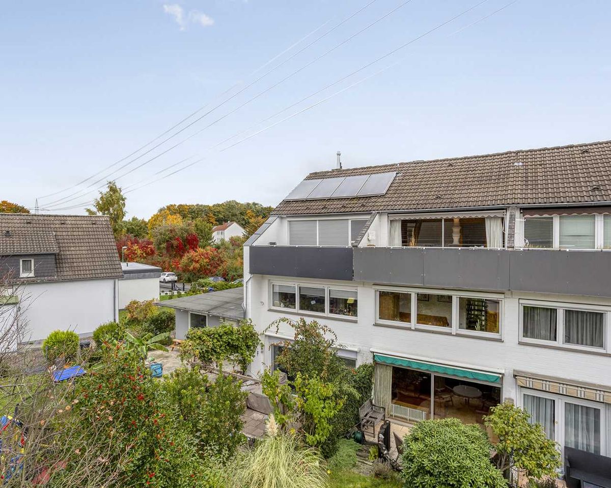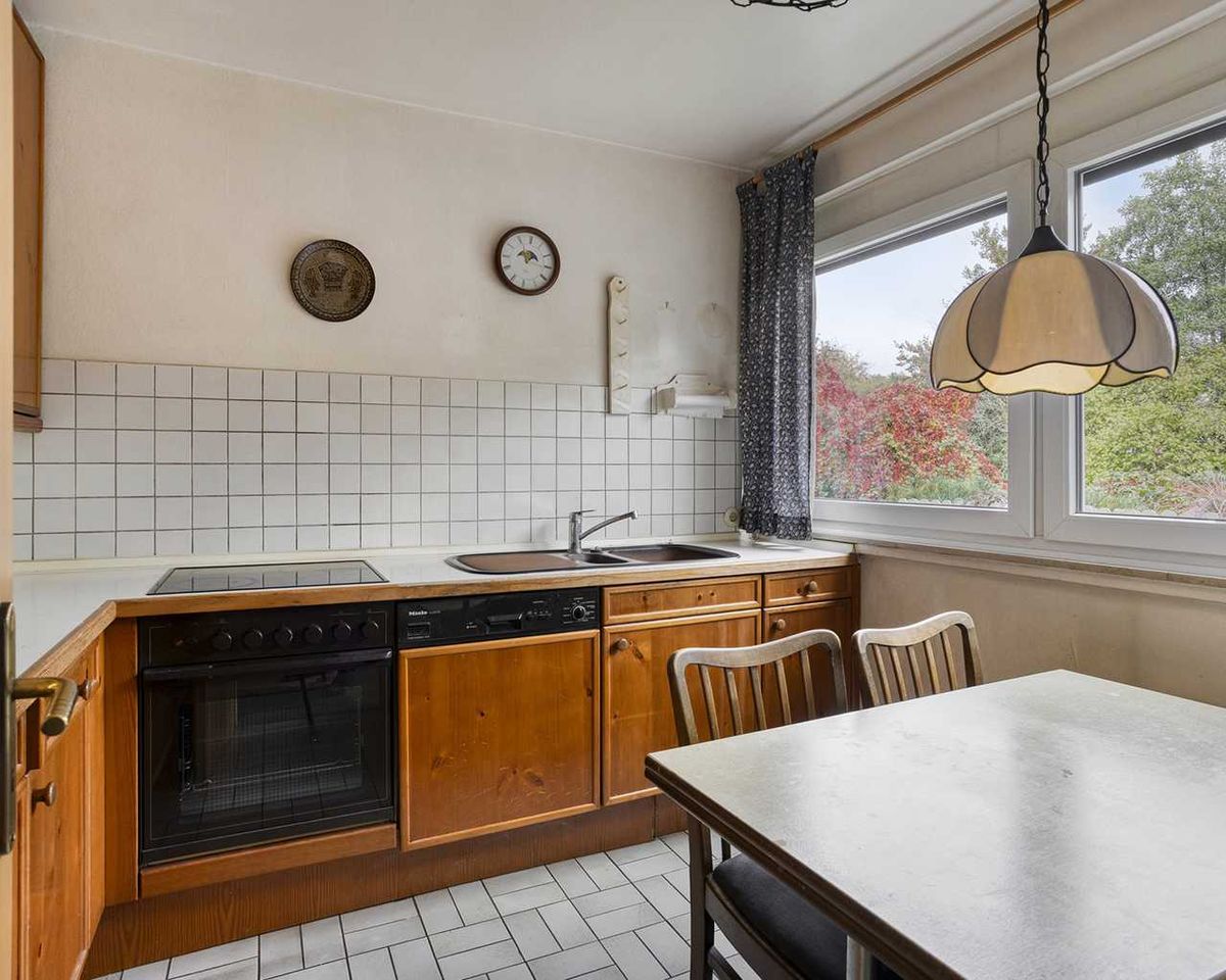 Auf der Eingangsebene erwartet Sie die einladende Diele, ein Gäste-WC und die geräumige Küche. Das sehr gut belichtete Wohnzimmer inkl. Essbereich befindet sich auf Gartenniveau.