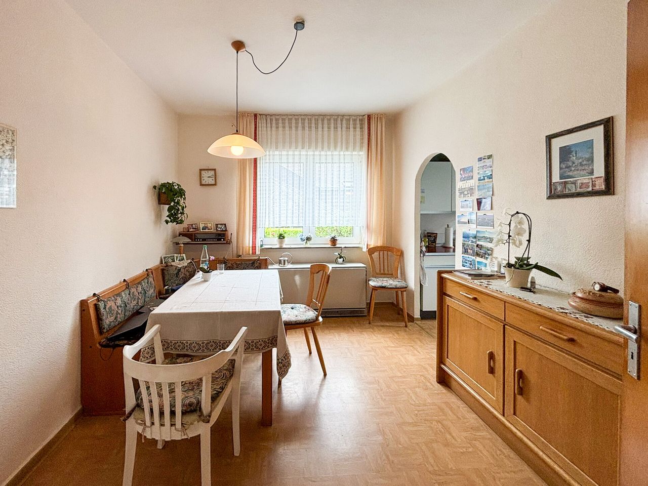 Dieses charmante Zweifamilienhaus wurde ca. 1956 auf einem ca. 569 m² großen Grundstück errichtet und überzeugt mit einer Wohnfläche von rund 163 m², die sich auf Erd- und Dachgeschoss verteilt. Dank der Raumaufteilung eignet sich das Haus ideal für Familien mit großzügigem Platzbedarf oder für ein komfortables Mehrgenerationenwohnen. Im Erdgeschoss erwarten Sie ein Wohnzimmer, ein Schlafzimmer, ein Gästezimmer, ein Ankleidebereich sowie ein Esszimmer, das direkt in die Küche übergeht. Das Badezimmer ist mit einer Badewanne ausgestattet und rundet das Raumangebot dieser Etage ab. Das Dachgeschoss präsentiert sich als eigenständige Wohneinheit: Neben einer eigenen Küche mit angrenzendem Esszimmer und einem Badezimmer mit Dusche stehen hier Wohnzimmer, Schlafzimmer, Kinderzimmer sowie Büro zur Verfügung. Zusätzlichen Stauraum bietet der Dachboden, sowie der Vollkeller mit fünf praktischen Nutzräumen. Eine Garage sorgt für bequeme Parkmöglichkeiten. Modernisierungen wie die Heizungserneuerung in den 1970er-Jahren und der Austausch der Fenster in den 1990ern schaffen eine solide Grundlage. Überzeugen Sie sich selbst von den vielfältigen Möglichkeiten dieses Hauses und entdecken Sie Ihr neues Zuhause mit Potenzial!