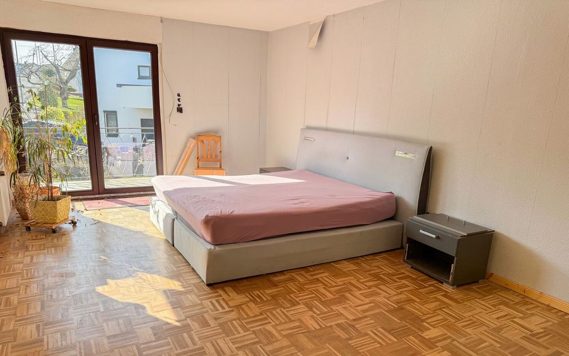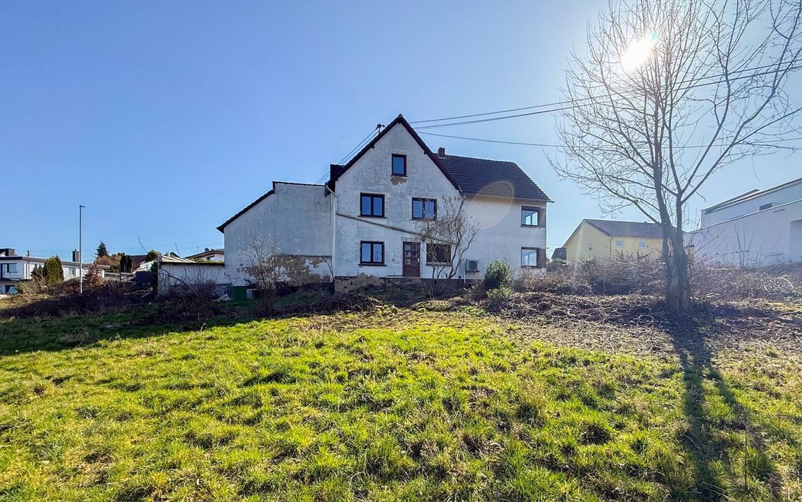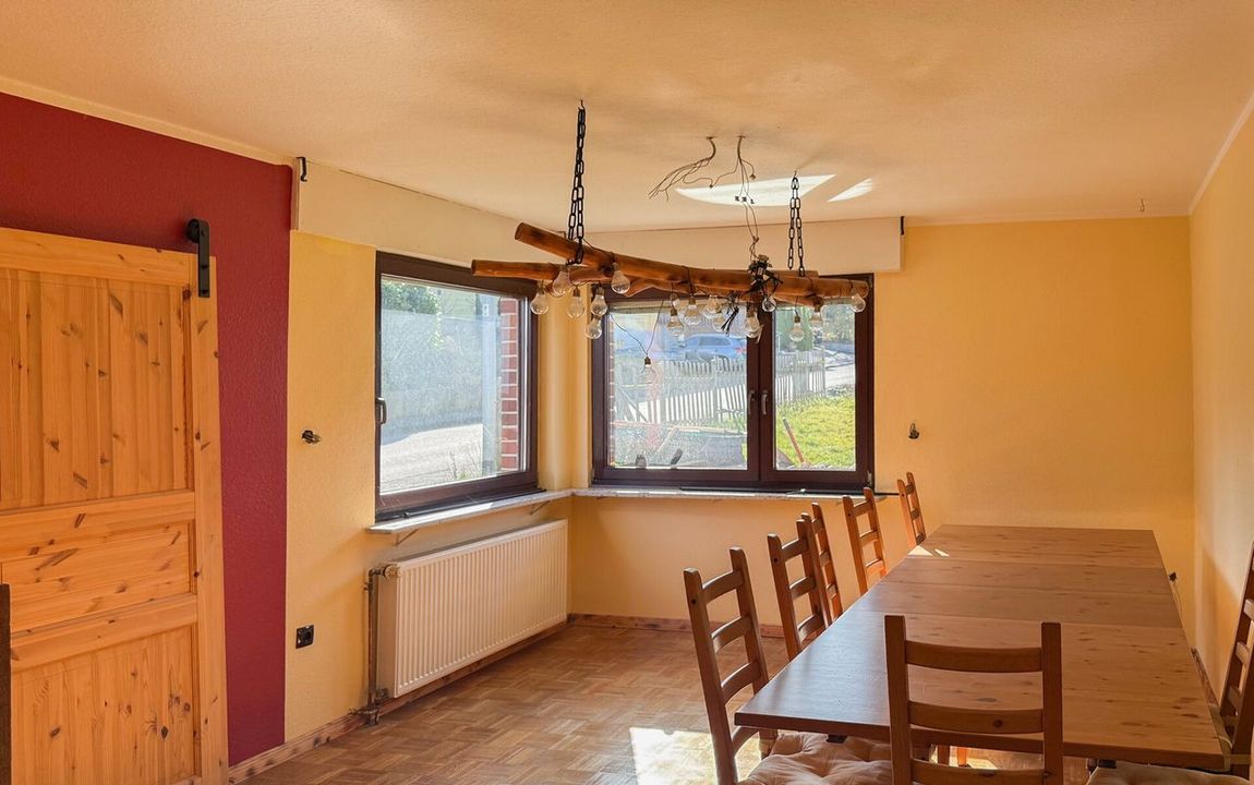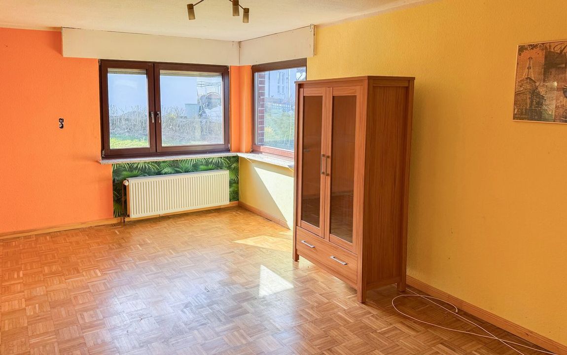 Dieses massiv gebaute Zweifamilienhaus aus dem Jahr 1960 bietet viel Potenzial für individuelle Wohnkonzepte. Auf zwei Etagen verteilen sich acht Zimmer, darunter fünf Schlafzimmer und zwei Badezimmer. Ein besonderes Potenzial bietet das ausbaufähige Dachgeschoss, das zusätzlichen Wohnraum nach individuellen Vorstellungen schaffen kann.