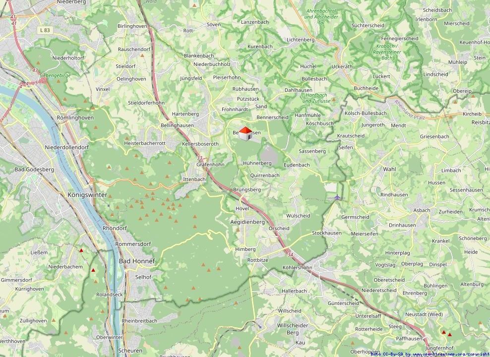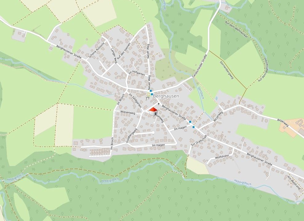 Die Wohnung befindet sich in 53639 Königswinter im idyllischen Ortsteil Berghausen, in einer besonders ruhigen und naturnahen Höhenlage oberhalb des beliebten Ortsteils Oberpleis. Die Umgebung ist geprägt von Wiesen, sanften Hügeln und einem herrlichen Blick in Richtung des Siebengebirge sowie zum markanten Oelberg.