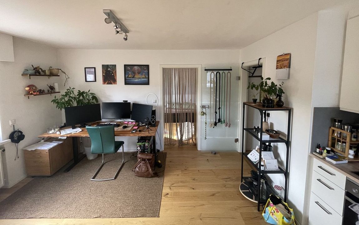 Die Küche präsentiert sich in einem sehr guten Zustand und ist mit allen notwendigen Geräten ausgestattet. Zudem bietet sie ausreichend Platz für einen Essbereich, sodass gemeinsames Kochen und Verweilen problemlos möglich sind.