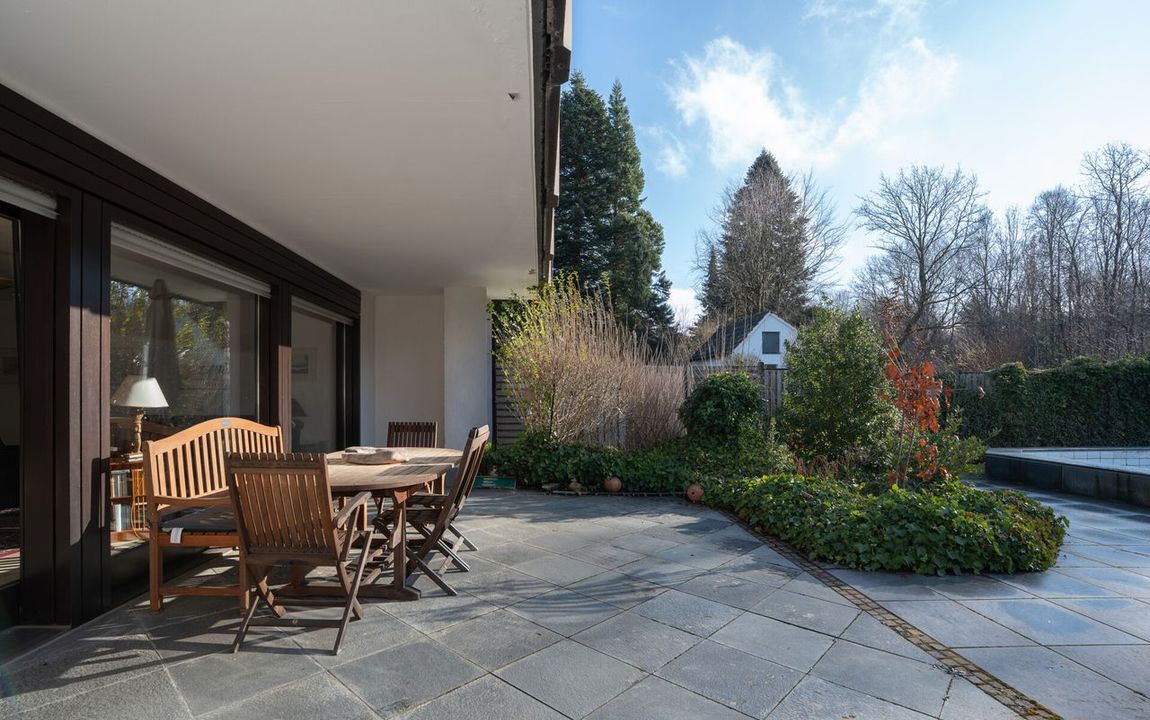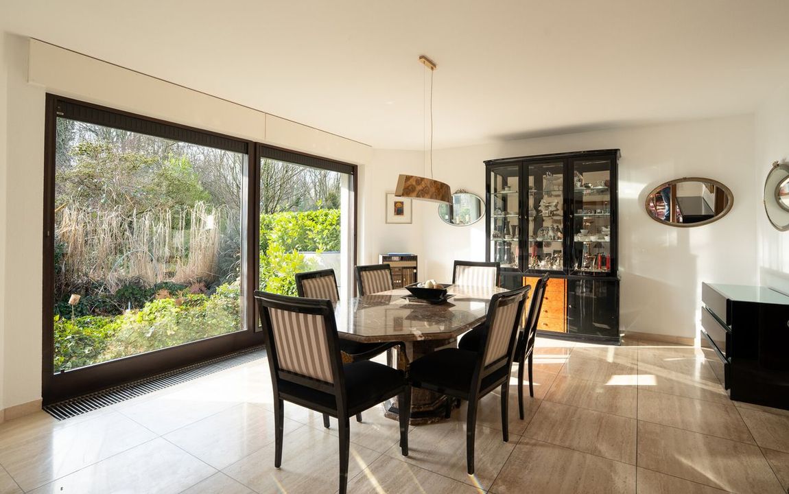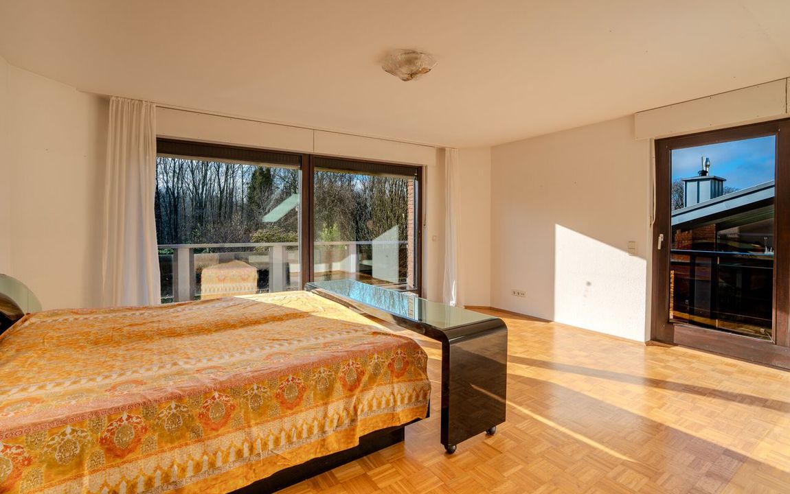 Das Obergeschoss bietet fünf Zimmer und drei fensterreiche Bäder sowie einen Balkon, der sich über die gesamte Rückseite des Hauses erstreckt. Er bietet einen tollen Blick in den Garten und auf den Pool. Bei Nutzung der Einliegerwohnung, stehen ein Elternschlafzimmer mit Vorraum und En-Suite-Badezimmer sowie zwei weitere Schlafräume mit Duschbad zur Verfügung.