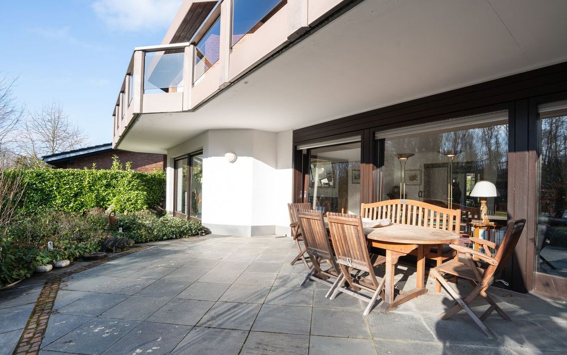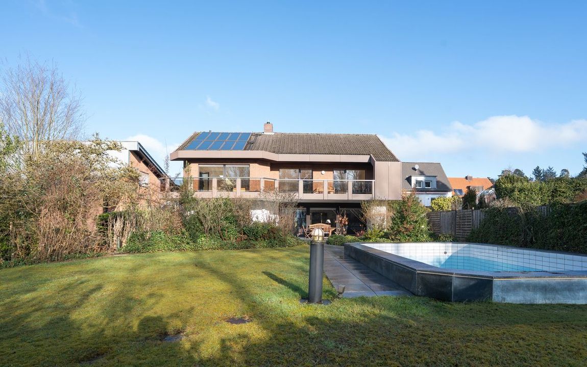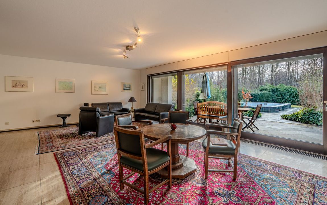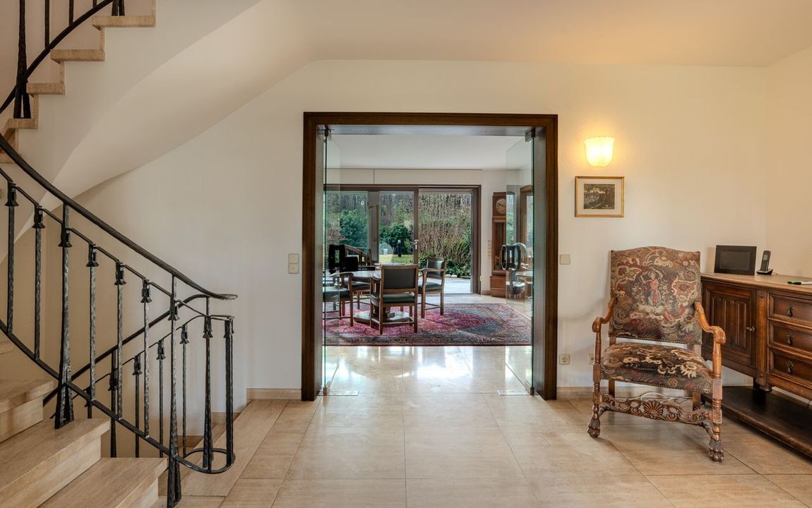 Bei Betreten des Hauses empfängt Sie eine großzügige Eingangsdiele mit Windfang, die einen einladenden ersten Eindruck hinterlässt. Der großzügige Wohn-/Essbereich von 63 m² begeistert durch bodentiefe Fenster, die einen stufenlosen Übergang zum liebevoll angelegten Garten bieten. Hier genießen Sie einen idyllischen Blick in den angrenzenden Wald. Die teilüberdachte Terrasse führt zum beheizten Außenpool, dessen Temperatur optimal durch Sonnenkollektoren reguliert wird.