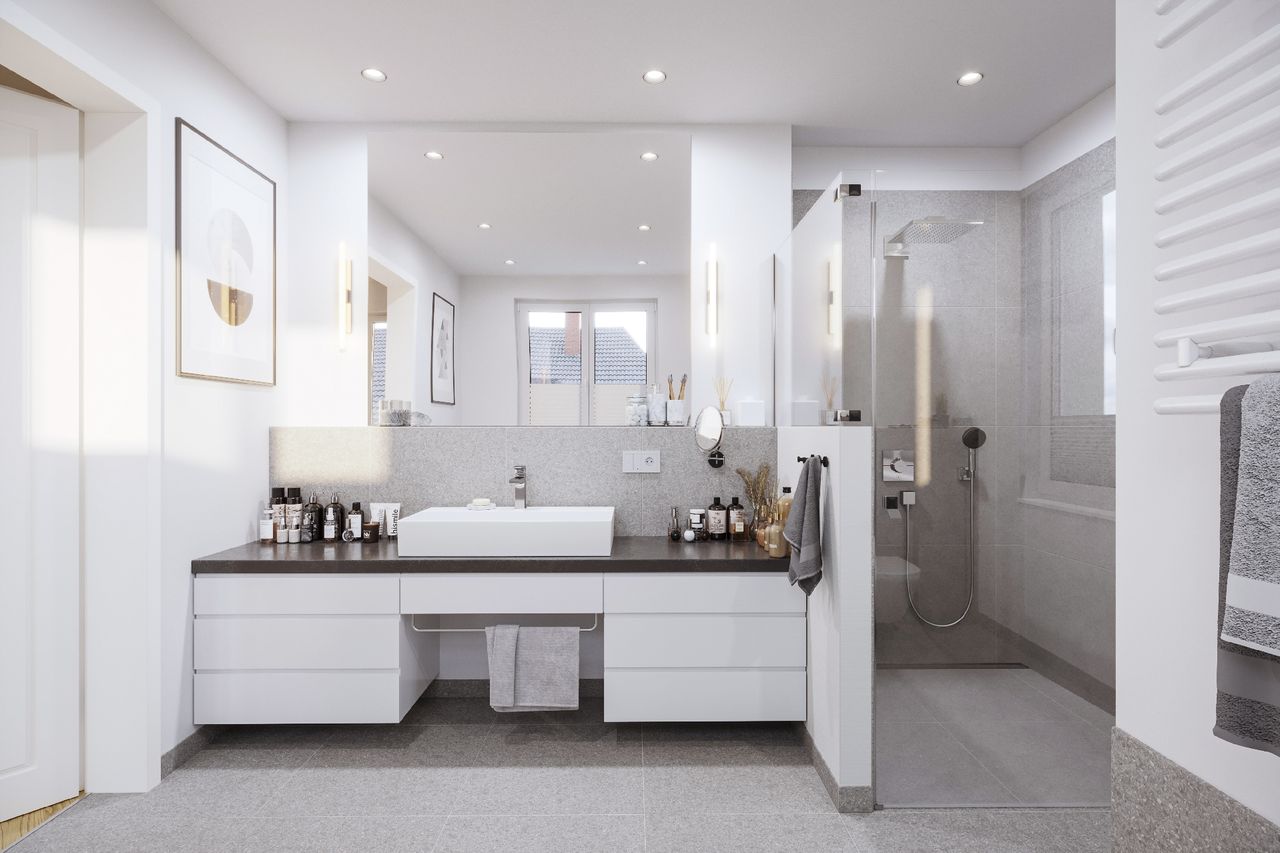 Die Wohnungen, so auch die hier beschriebene, erhalten natürlich Parkett (Verlegung: Fischgrät), Feinsteinzeug in den Bädern, Markenausstattung von der Steckdose bis zum Wasserhahn…. Je nach Kaufzeitpunkt können Sie Sonderwünsche mit dem Bauträger abstimmen. Die Gewerke und Ausstattungen können Sie der Baubeschreibung entnehmen, die wir Ihnen gerne zur Verfügung stellen.
