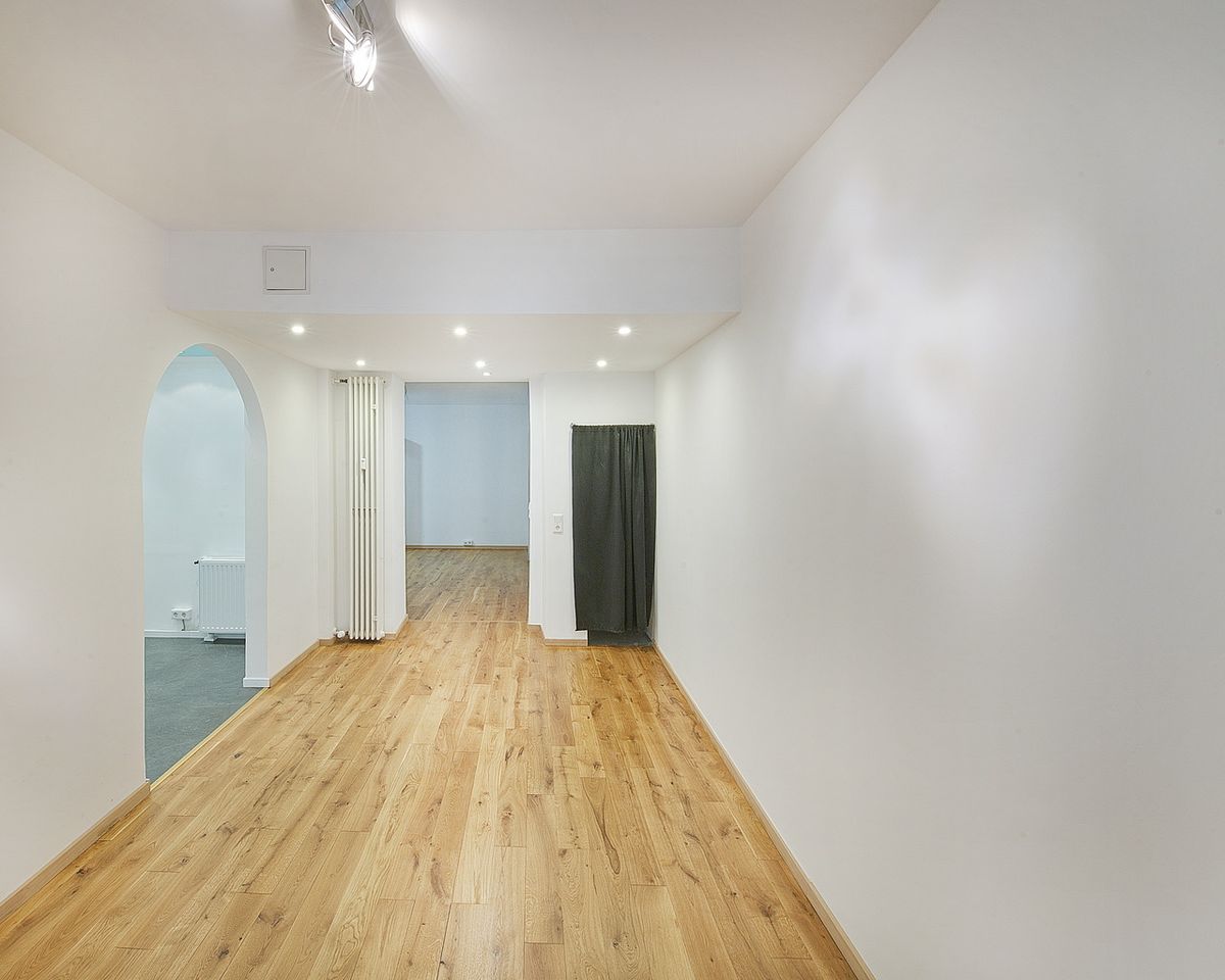 Das Ladenlokal mit historischem Boden eignet sich hervorragend als Empfangsbereich oder als Ausstellungsfläche. Zusätzlich stehen 4 großzügige Büroräume, ein Sozialraum, eine Teeküche sowie ein WC zur Verfügung.