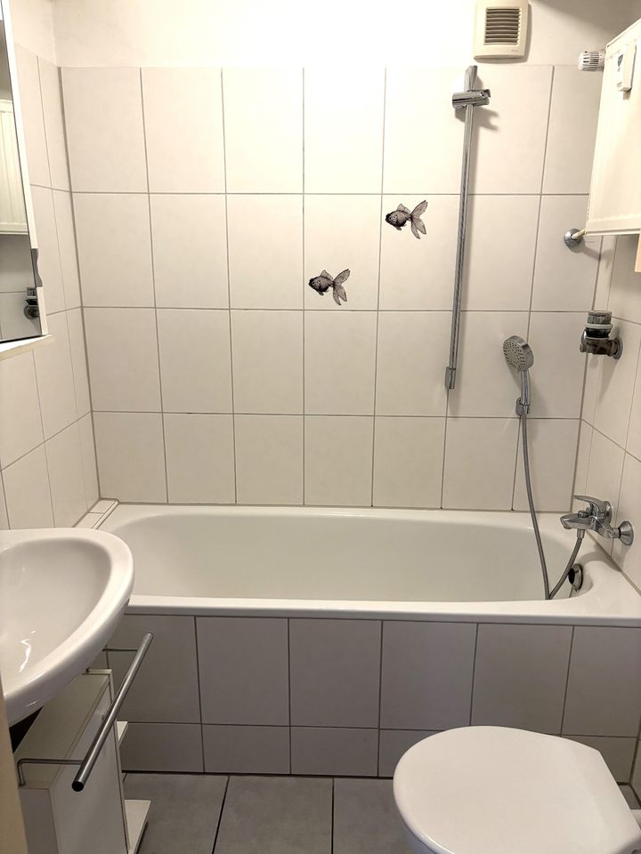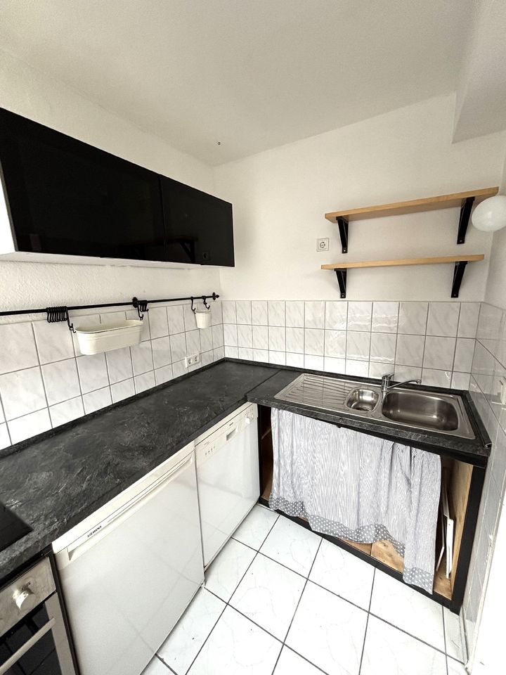 Wohnbereich und Schlafzimmer sind mit Laminat ausgelegt. Die Wände sind mit Raufaser tapeziert und weiß gestrichen. Die abgebildete Kücheneinrichtung ist im Kaufpreis enthalten (ein Starterkit, wenn man keine eigene hat). Die Videogegensprechanlage zeigt Ihnen, wer vor derTür steht, auch dann, wenn Sie gerade im Supermarkt sind. Beheizt wird über Fernwärme. Das Warmwasser generiert ein Durchlauferhitzer. Im Speicher befindet sich ein Waschraum mit einem Stellplatz für Ihre Waschmaschine. Für den Strom zahlen Sie EUR 30,– p.a. pauschal. Zur Wohnung gehört ebenfalls ein kleiner Keller.