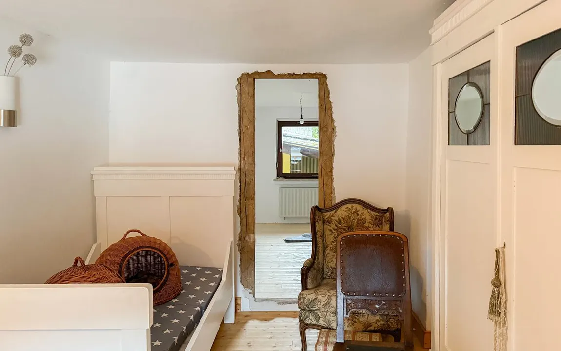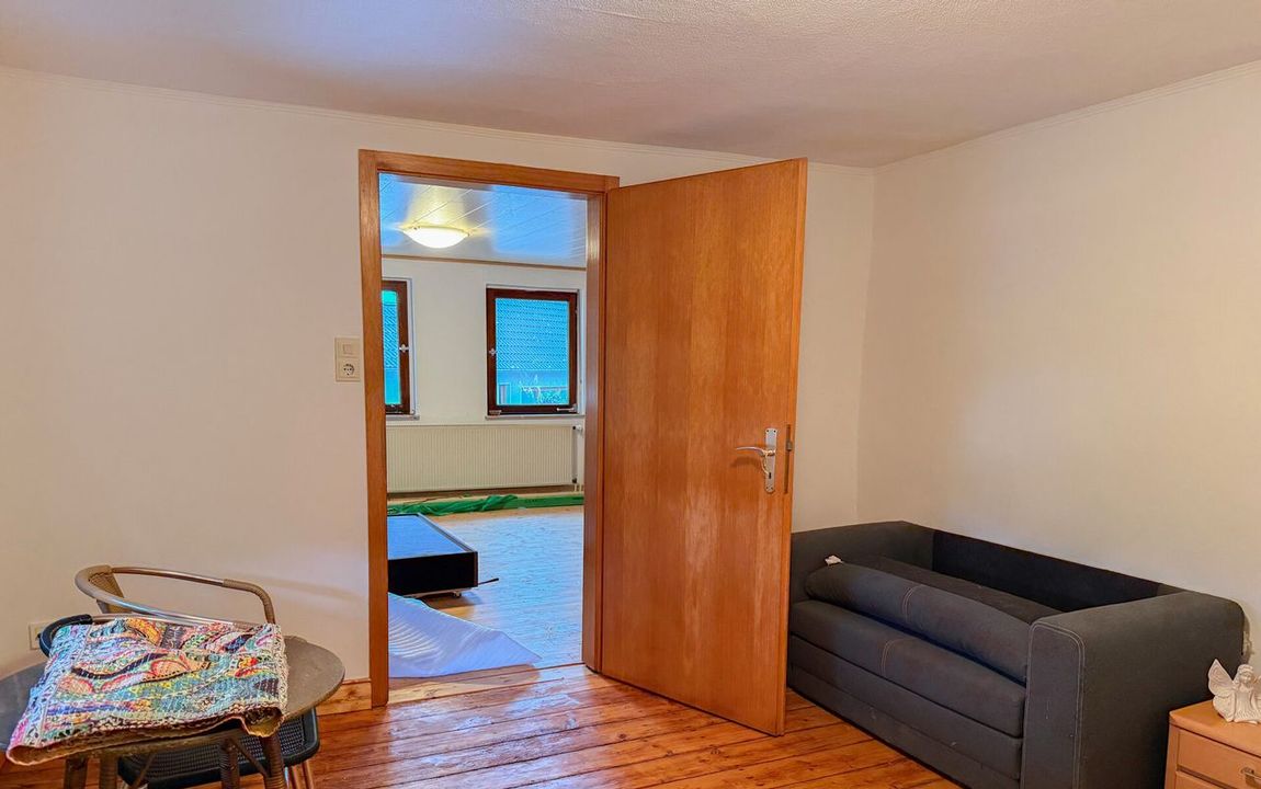 Zum Angebot zählen das Wohngebäude mit angrenzender Scheune und ehemaligem Stall (Bj. 1963) sowie ein weiteres Wirtschaftsgebäude (Bj. 1975). Außerdem gehören ca. 30.000 m² Weideland dazu, welches in unmittelbarer Nähe zum Objekt liegt. Der Wohnbereich erstreckt sich über 2 Etagen. Im Erdgeschoss befinden sich die Küche sowie ein geräumiger Wohn-/Essbereich, die zurzeit vom Eigentümer neu gestaltet werden. Ergänzt wird diese Etage durch einen Vorratsraum, ein großes Bad sowie ein Zimmer, welches sich ideal als Büro eignet. Das Obergeschoss wurde bereits umfangreich renoviert. So wurden z.B. ein neuer Dielenboden verlegt und die Wände mit einem Kalkputz versehen. Im Obergeschoss befinden sich insgesamt 5 Zimmer und ein Balkon mit Südausrichtung. Der Dachboden ist über eine Treppe erreichbar und noch ausbaufähig.