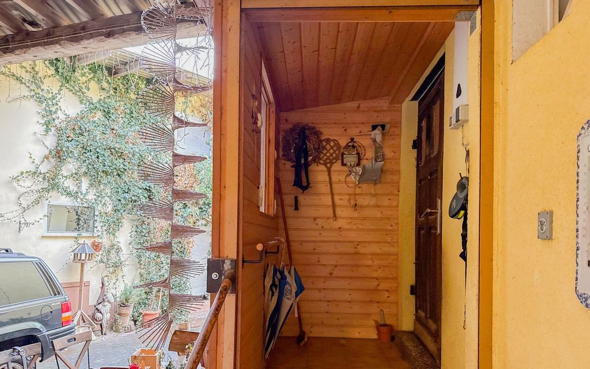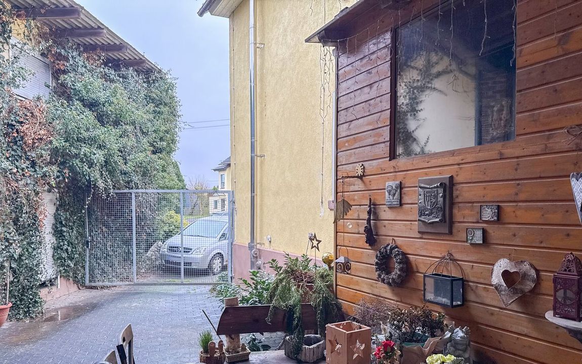 An der linken Gebäudeseite fliest ein Bachlauf vorbei. An diesem wurde ein idyllisch gelegener Freisitz errichtet, der im Sommer auch ein schattiges Plätzchen bietet