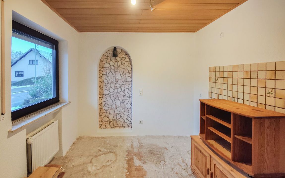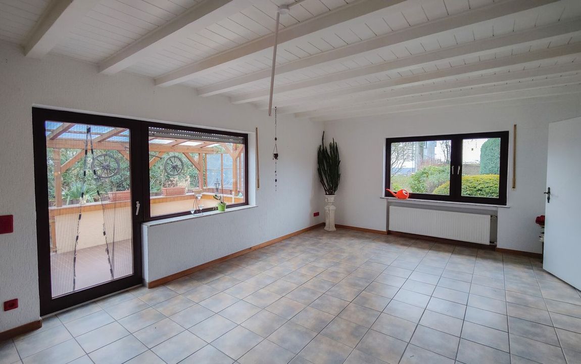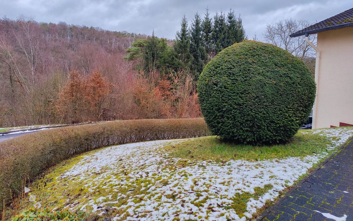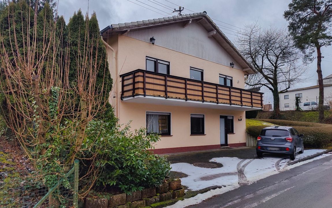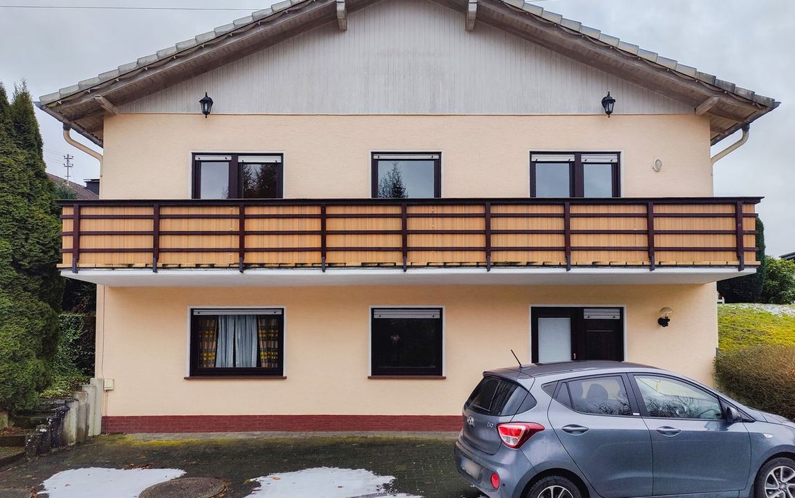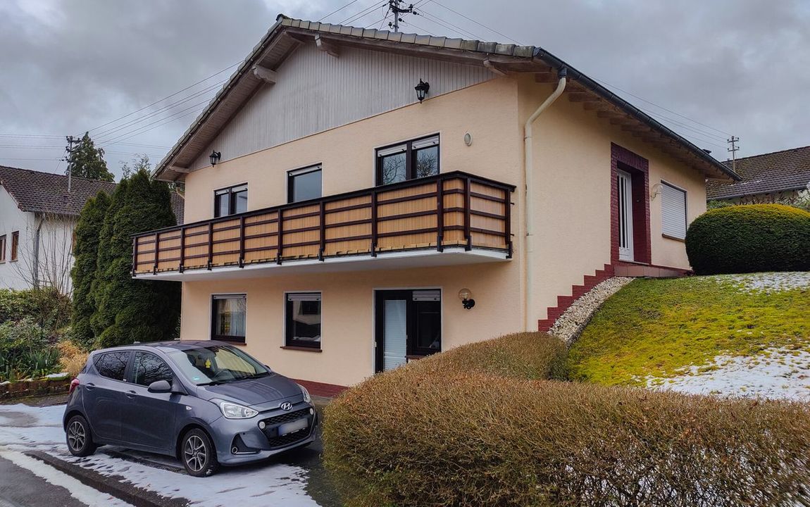 So wäre z.B. eine barrierefreie Wohnung im Souterrain denkbar, die über 2 Zimmer Küche und Bad verfügt. Weitere Kellerräume könnten der Wohnung zugeordnet werden. Alternativ kann der Wohnbereich im UG auch der Wohnung im EG zugeordnet werden, da es eine zentrale Innentreppe gibt.Im Erdgeschoss befindet sich der Hauptwohnbereich mit seinen 3 Zimmern, Küche und Bad. Vom Wohnzimmer aus gelangt man auf eine große überdachte Terrasse, die an der Rückseite des Hauses errichtet wurde. Straßenseitig befindet sich ein großer Balkon mit mehren Zugängen und herrlichem Ausblick in die Umgebung. Auf dem Grundstück wurde noch eine Gartenhütte platziert, die als Abstell- oder Partyhütte dienen könnte.