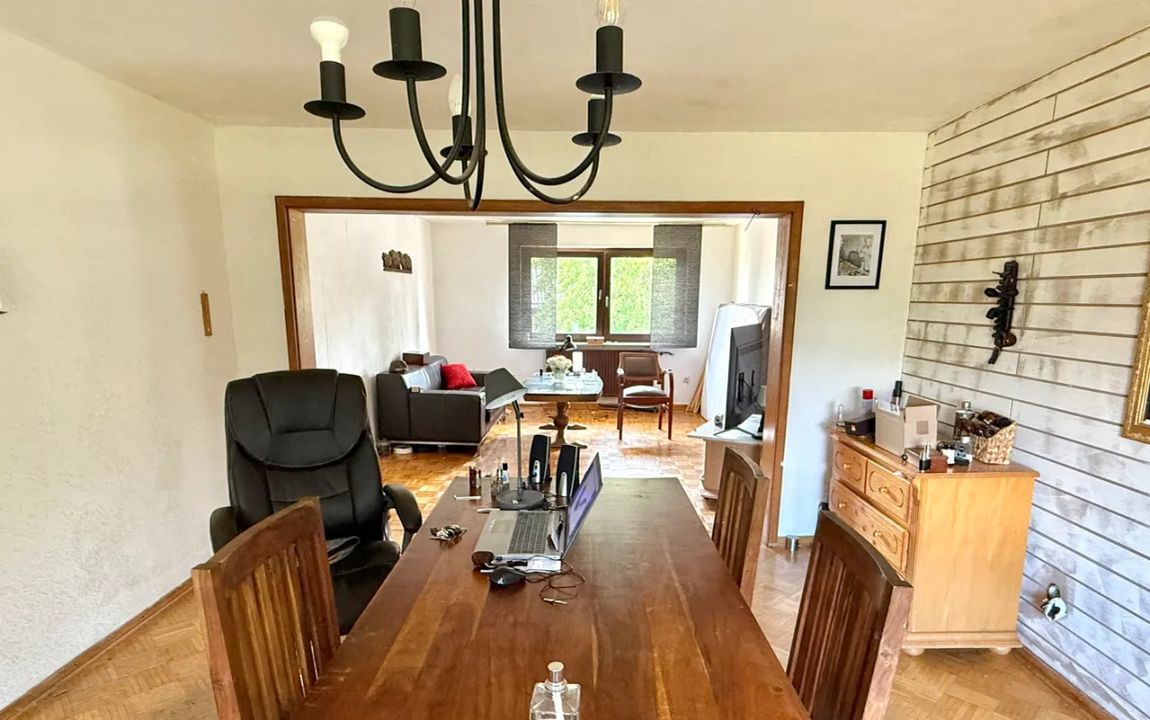 Im Obergeschoss befindet sich der Hauptwohnbereich mit ca. 80 m² Wohnfläche. Von diesem gelangen Sie auch auf kurzem Wege zum Wiesengrundstück hinter dem Haus sowie auf den ausbaufähigen Speicher. Das Obergeschoss verfügt außerdem über ein geräumiges Wohn-/Esszimmer, eine Einbauküche und 2 weitere Zimmer. Das Bad müsste ggf. modernisiert werden.