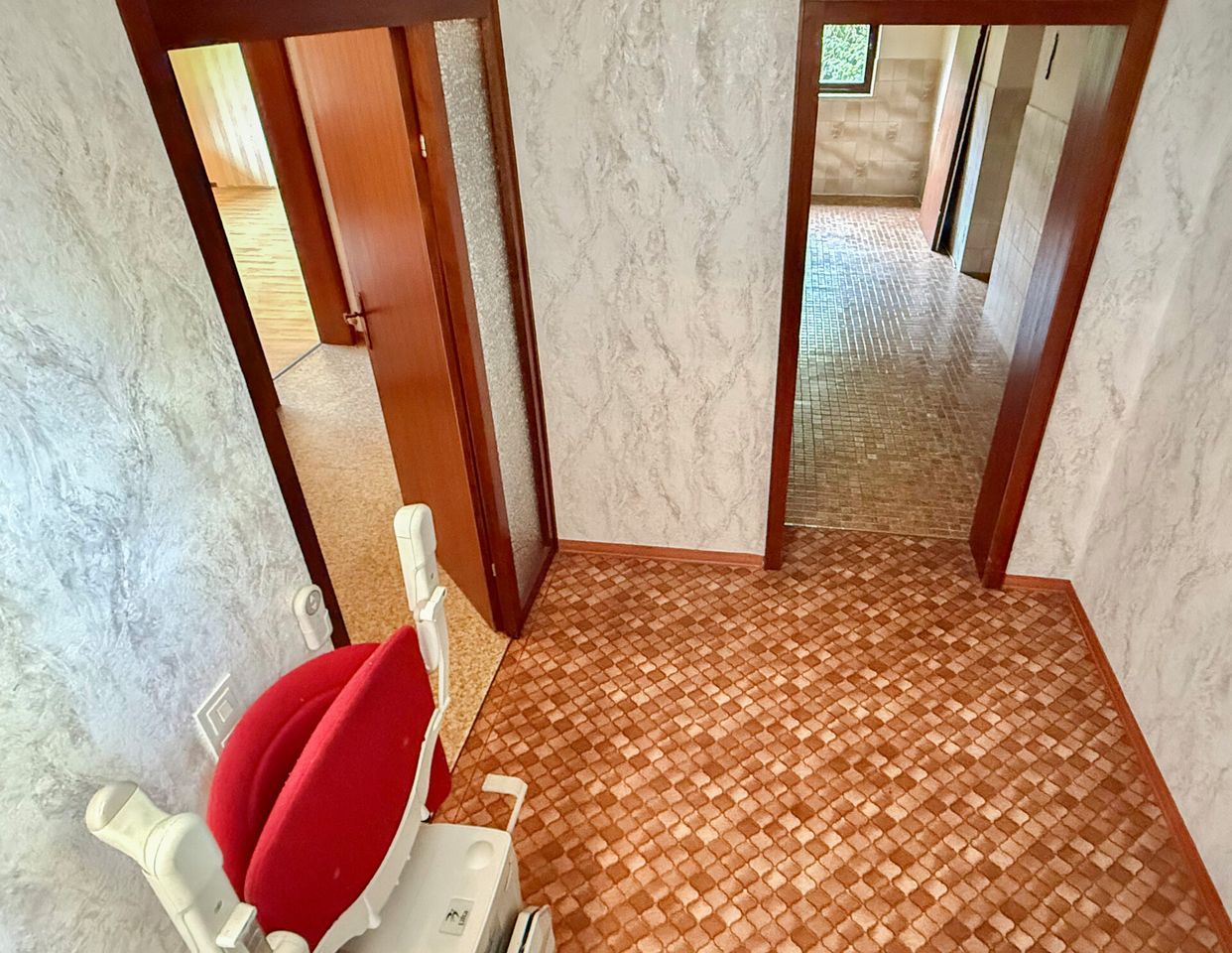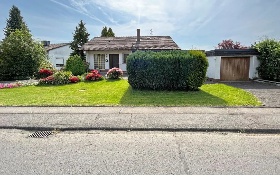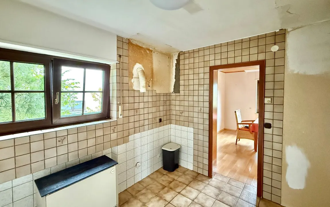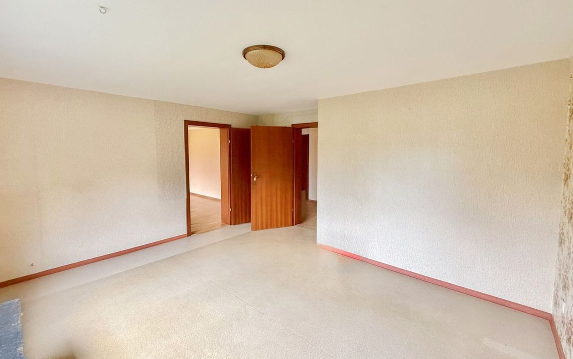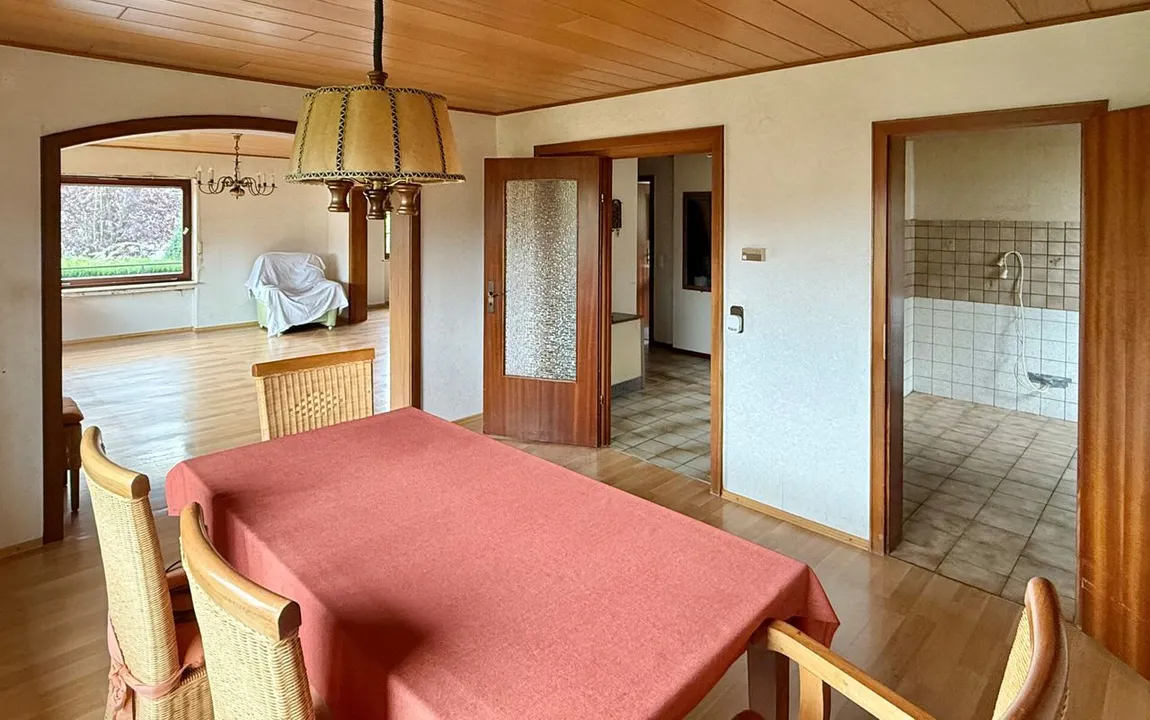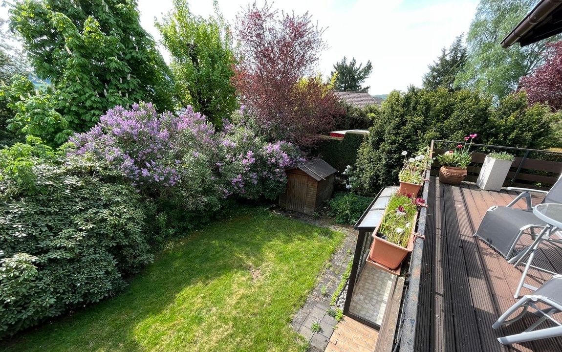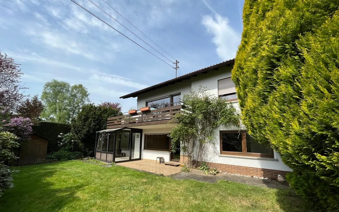 Das um 1970 erbaute Objekt überzeugt durch eine Wohnfläche von rund 155 m², verteilt auf zwei Ebenen und bietet zahlreiche Gestaltungsmöglichkeiten. Auf dem ca. 593 m² großen Grundstück finden Sie zwei Einzelgaragen und einen gepflegten Gartenbereich vor – die große Thuja im hinteren Bereich wurde inzwischen entfernt. Die Immobilie lässt sich ideal als klassisches Einfamilienhaus nutzen: Im oberen Bereich befinden sich die Hauptaufenthaltsräume wie Wohn-, Ess- und Küchenbereich. Hervorzuheben ist hier das bereits modernisierte Badezimmer mit bodentiefer, offener Dusche und altersgerechter Ausstattung. Die untere Etage bietet ausreichend Platz für Schlafzimmer und weitere Räume. Alternativ wäre das Haus mit entsprechenden Maßnahmen in zwei separate Einheiten aufteilbar. So könnten zwei eigenständige 2ZiKB Wohnungen entstehen – ideal für Mehrgenerationenwohnen, für heranwachsende Kinder oder auch zur Vermietung. So eignet sich das Haus sowohl für Familien, die viel Raum benötigen, als auch für Paare oder ältere Personen, die Wert auf eine altersgerechte Nutzung legen. Dank des vorhandenen Balkons sowie der überdachten Terrasse mit angrenzendem Wintergarten bietet die Immobilie außerdem schöne Rückzugsorte.