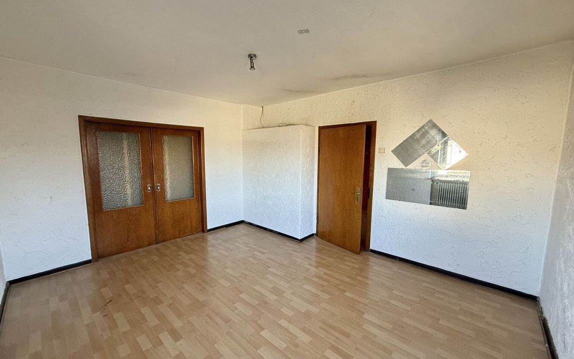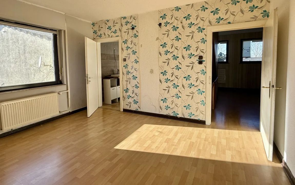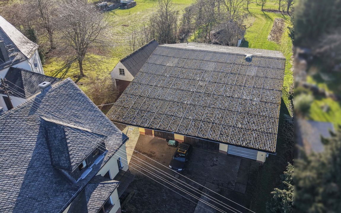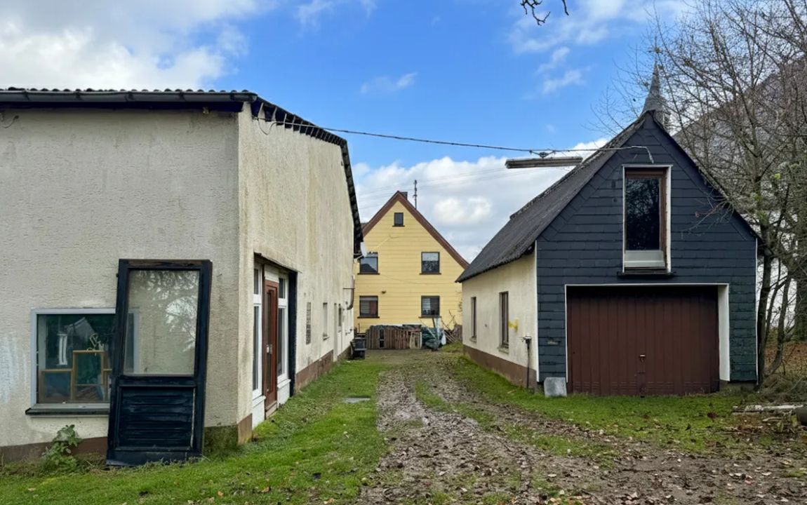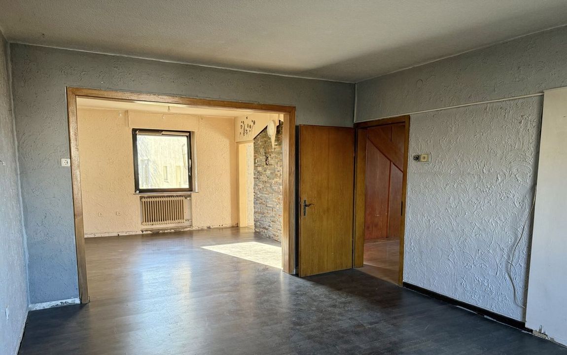 Dieses renovierungsbedürftige Einfamilienhaus aus ca. 1950 bietet auf rund 129 m² Wohnfläche und einem weitläufigen Grundstück von ca. 1.500 m² viel Platz. Der zweigeschossige Massivbau überzeugt mit einer guten Raumaufteilung: Im Erdgeschoss befinden sich ein Schlafzimmer, ein großer Wohn- und Essbereich mit Kaminofenanschluss, eine Küche sowie ein Gäste-WC – ideal für ältere Personen oder barrierearme Wohnkonzepte. Im Obergeschoss stehen drei weitere Zimmer und ein Bad bereit. Der Vollkeller mit vier Räumen sorgt für viel Stauraum. Auf dem Grundstück befinden sich außerdem eine große ehemalige Scheune /z.T. vermietet mit drei Teilbereichen sowie ein Garagengebäude, die vielfältige Möglichkeiten für Hobbys, Werkstatt, Lager oder zusätzliche Fahrzeuge bieten. Die großzügige Hofeinfahrt schafft weitere Stellplätze.