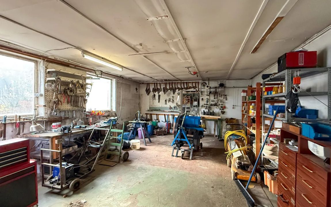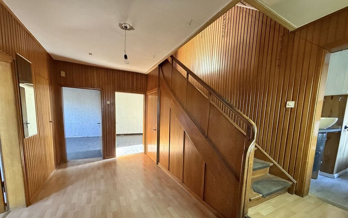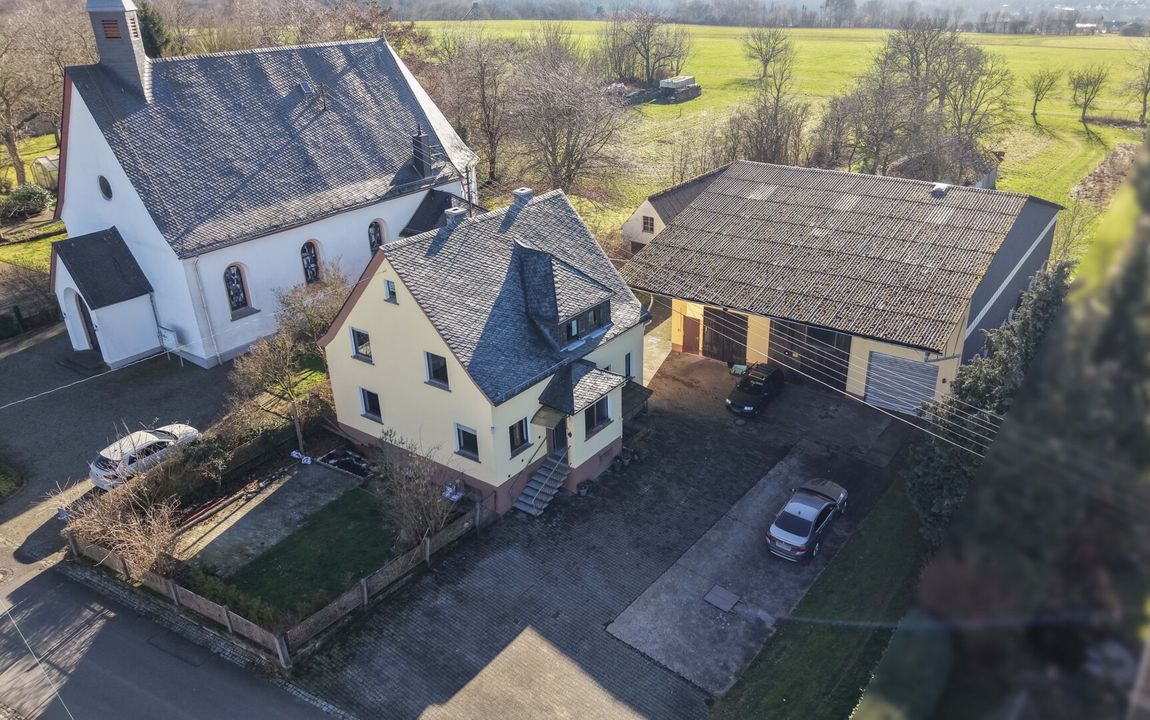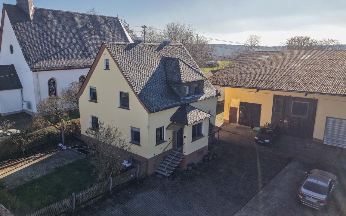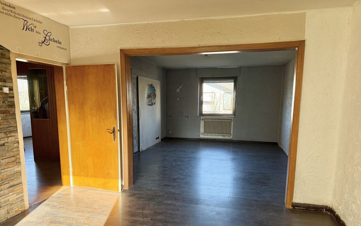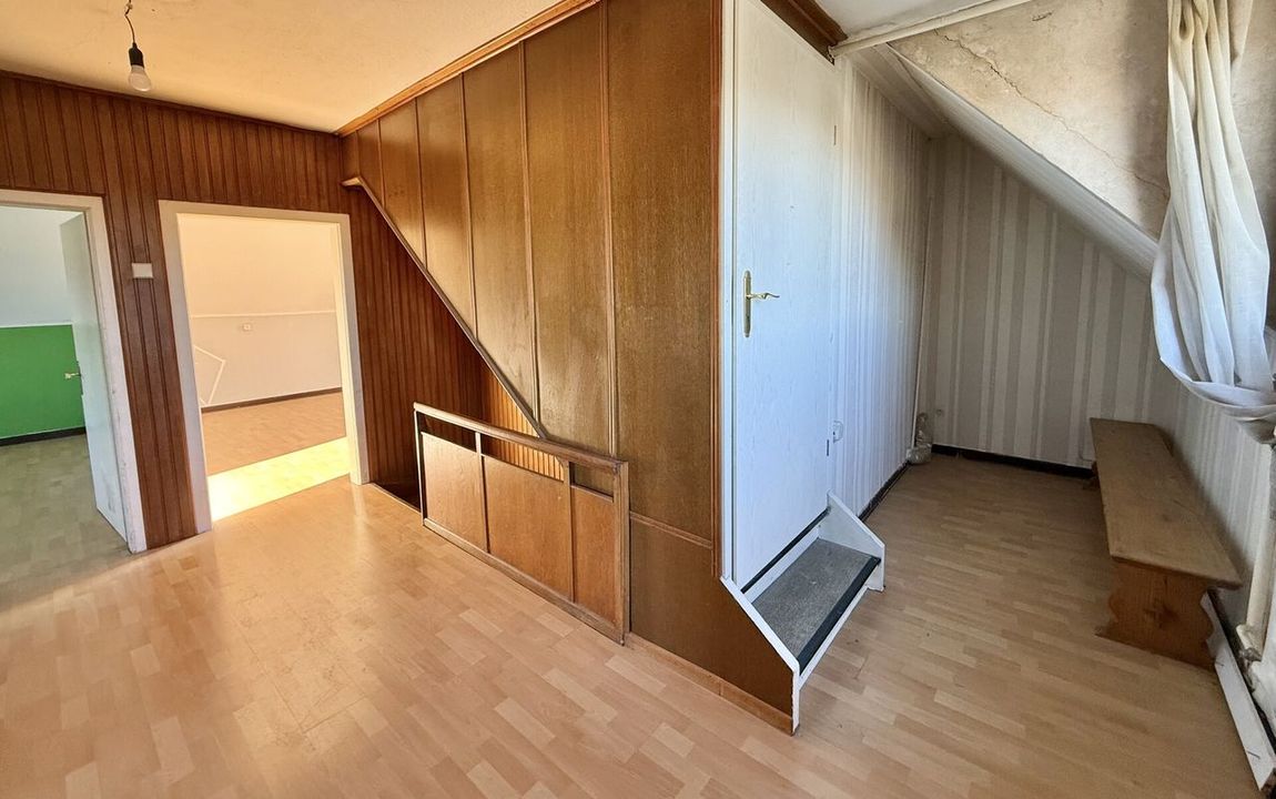 Dieses renovierungsbedürftige Einfamilienhaus aus ca. 1950 bietet auf rund 129 m² Wohnfläche und einem weitläufigen Grundstück von ca. 1.500 m² viel Platz. Der zweigeschossige Massivbau überzeugt mit einer guten Raumaufteilung: Im Erdgeschoss befinden sich ein Schlafzimmer, ein großer Wohn- und Essbereich mit Kaminofenanschluss, eine Küche sowie ein Gäste-WC – ideal für ältere Personen oder barrierearme Wohnkonzepte. Im Obergeschoss stehen drei weitere Zimmer und ein Bad bereit. Der Vollkeller mit vier Räumen sorgt für viel Stauraum. Auf dem Grundstück befinden sich außerdem eine große ehemalige Scheune /z.T. vermietet mit drei Teilbereichen sowie ein Garagengebäude, die vielfältige Möglichkeiten für Hobbys, Werkstatt, Lager oder zusätzliche Fahrzeuge bieten. Die großzügige Hofeinfahrt schafft weitere Stellplätze.