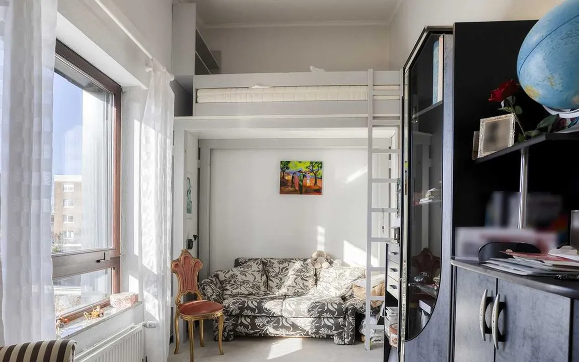 Größtenteils mit Strukturtapete tapeziert und hell gestrichen