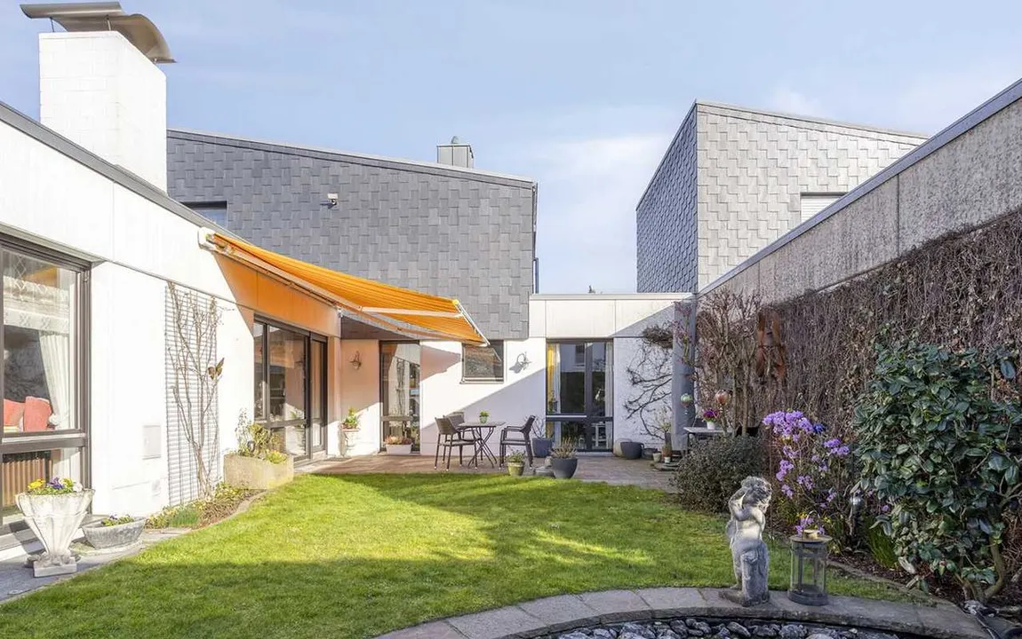 Dieses zweigeschossige Einfamilienhaus im Bungalowstil liegt in der sehr guten Wohnlage von Ratingen-Ost. Die Terrasse und der Garten des Hauses sind nach Westen ausgerichtet. Das Umfeld ist geprägt durch eine grüne Umgebung und eine lockere Wohnbebauung. Einkaufsmöglichkeiten befinden sich in der Nähe. Einkaufsmöglichkeiten liegen in fußläufiger Entfernung. Der historische Stadtkern von Ratingen in ca. 15 Fußminuten erreicht. Die Naherholungsgebiete Blauer See sowie die nahe gelegene Auermühle mit Restaurant/Biergarten im reizvollen Angertal bieten sehr viele Wanderwege und Erholungsmöglichkeiten. Zum S-Bahn Anschluss (Bahnhof Ratingen-Ost) nach Essen, Düsseldorf und Köln benötigt man ca. 10 Minuten zu Fuß. Eine optimale Verkehrsanbindung an die Autobahnen A3 Köln-Oberhausen, die A44 Ratingen-Mönchengladbach und die Autobahn A52 Essen-Düsseldorf / Roermond (NL), an den Flughafen und in das Ruhrgebiet ist gegeben.