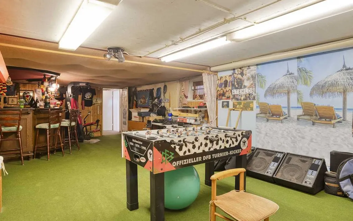 Das Untergeschoss bietet noch einmal die gesamte Fläche wie im Erdgeschoß. Hier befinden sich die Waschküche, der Heizungsraum, der Abstellkeller und der Wirtschaftsraum. Hinzu kommt ein großer Hobbyraum mit abgegrenztem Saunabereich.