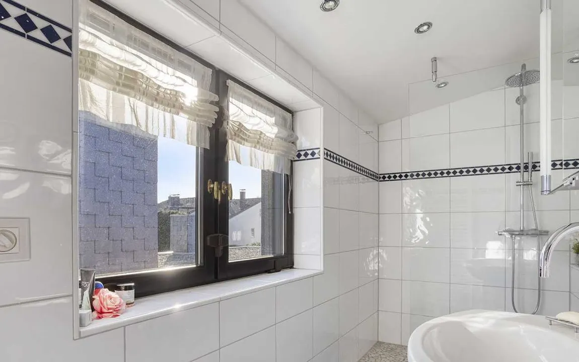 modernes Tageslichtbad mit Dusche (Baujahr 2016) im Obergeschoss