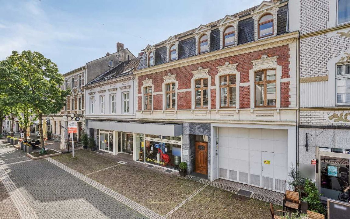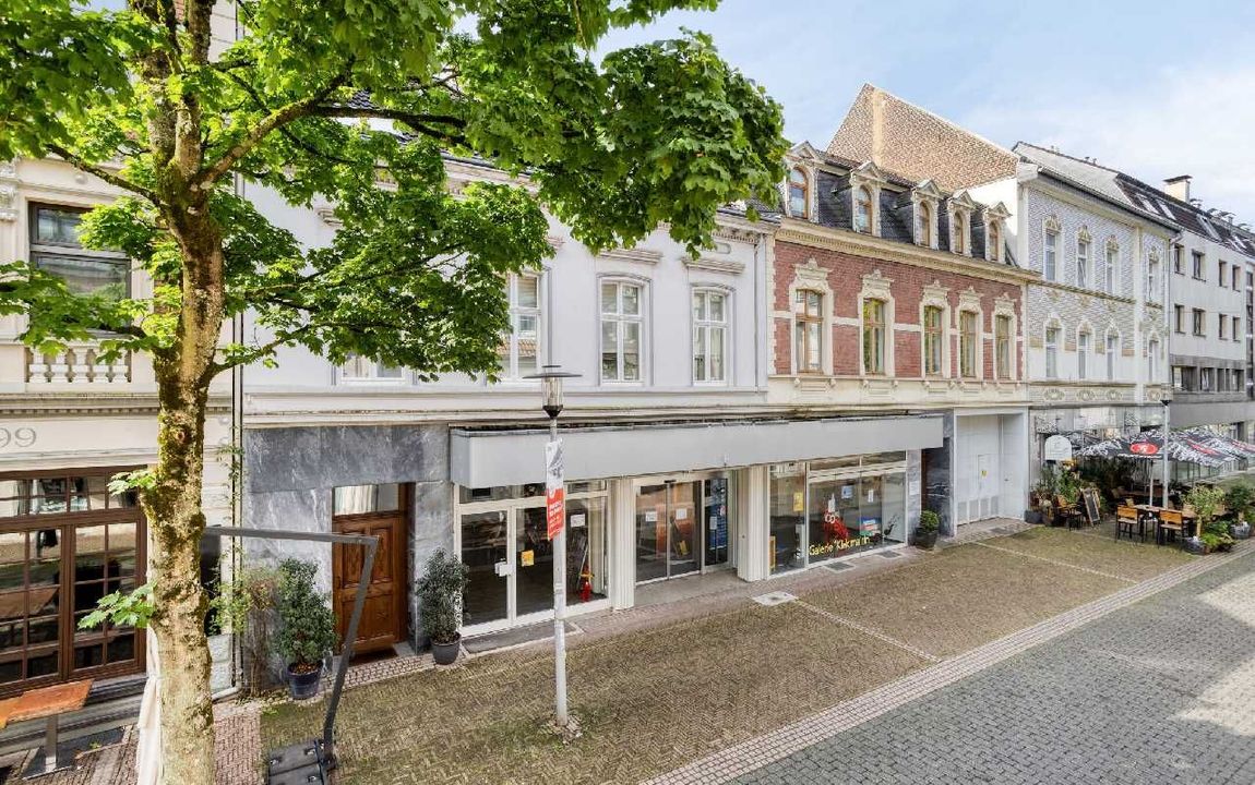 Das Ladenlokal, gepaart mit einer Lagerfläche, befindet sich in einem gepflegten Wohn- und Geschäftshaus in der belebten Fußgängerzone Erkraths.