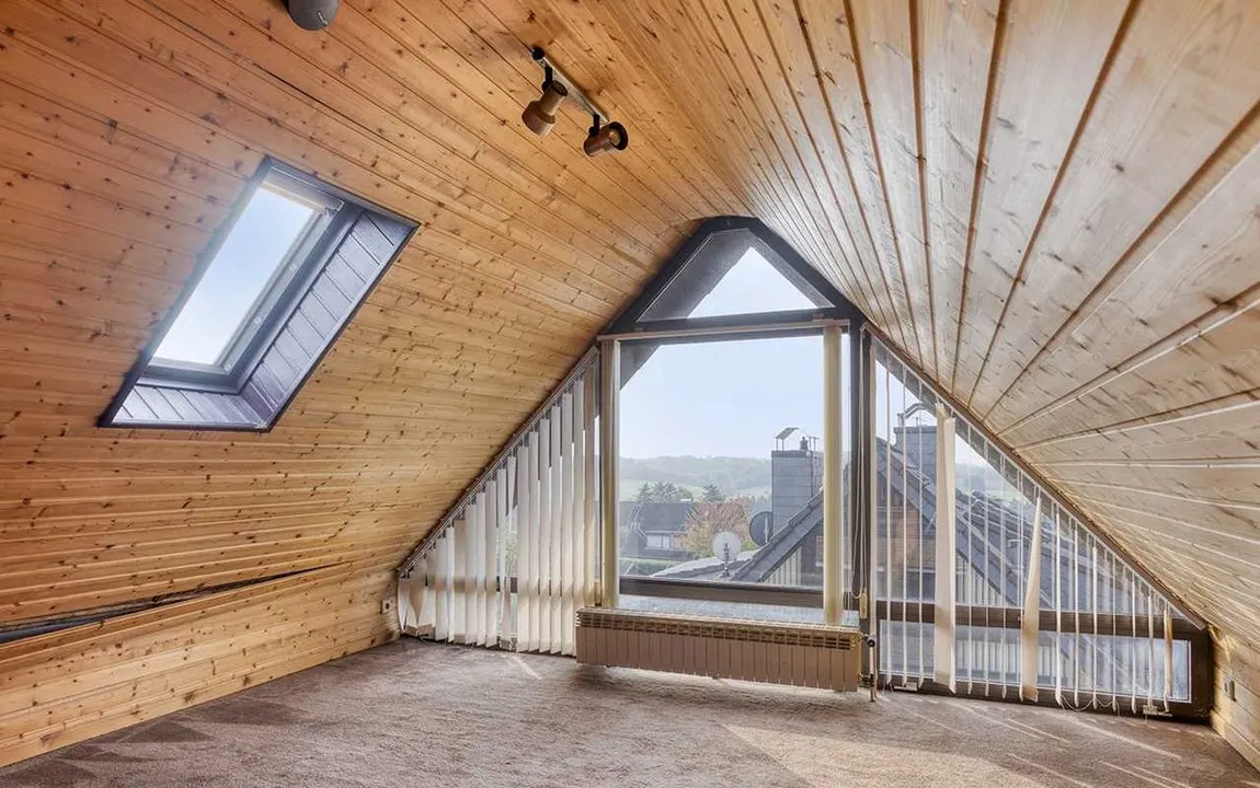 Im Obergeschoss befinden sich drei Zimmer sowie ein Tageslichtbad mit Dusche und Badewanne. Das Dachgeschoss beherbergt einen gemütlichen Hobbyraum, der durch den herrlichen Weitblick ins Grüne besticht – ideal als Rückzugsort oder Homeoffice.