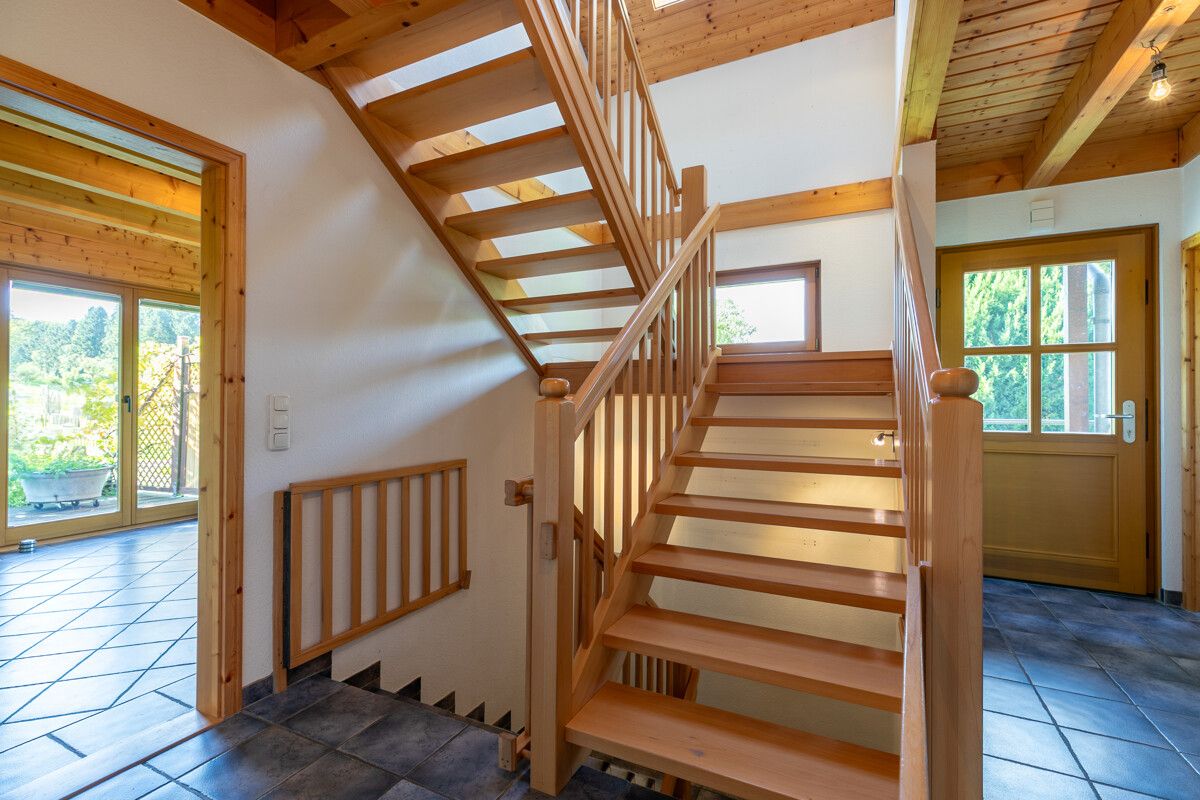 Fernab vom Alltagsstress präsentiert sich dieses hochwertige Stommel-Holzhaus als echtes Wohnidyll. Wer jemals Träume vom komfortablen Landleben hatte, kann diese hier verwirklichen. Drei Etagen mit ca. 179 m² Wohnfläche und ca. 88 m² Nutzfläche bieten beste Voraussetzungen und Freiräume für die ganze Familie.