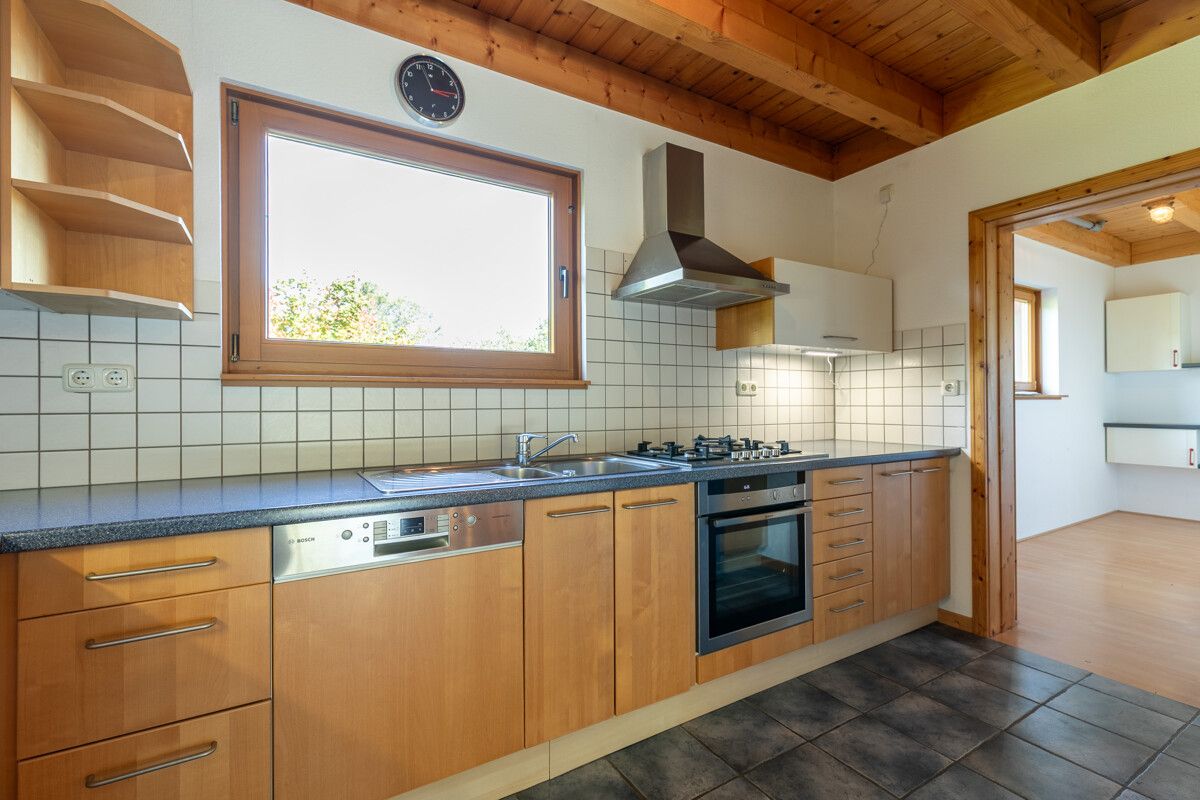 Durch eine verglaste Holztür betreten Sie das Herz des Hauses: Hier kann die ganze Familie auf einer Fläche von fast 60 m² nach Lust und Laune kochen, speisen und gemütlich beisammen sein. Die hochwertige Einbauküche ist bereits im KP enthalten, und ein großer Vorratsraum sorgt für extra Staufläche. Besonderes Highlight im Essbereich ist der individuelle Kaminofen. Da freut man sich direkt auf die kalte Jahreszeit und das Kuscheln auf der Kaminbank. Bei so viel Gemütlichkeit und den großzügigen Räumlichkeiten kann das nächste Fest schon geplant werden. Auf der schönen Süd-West-Terrasse verbringt man herrliche Sonnenstunden, und im tollen Garten ist jede Menge Platz für Gemüsebeete, Feuerstelle und Spielgeräte. Ein Paradies für Groß und Klein!