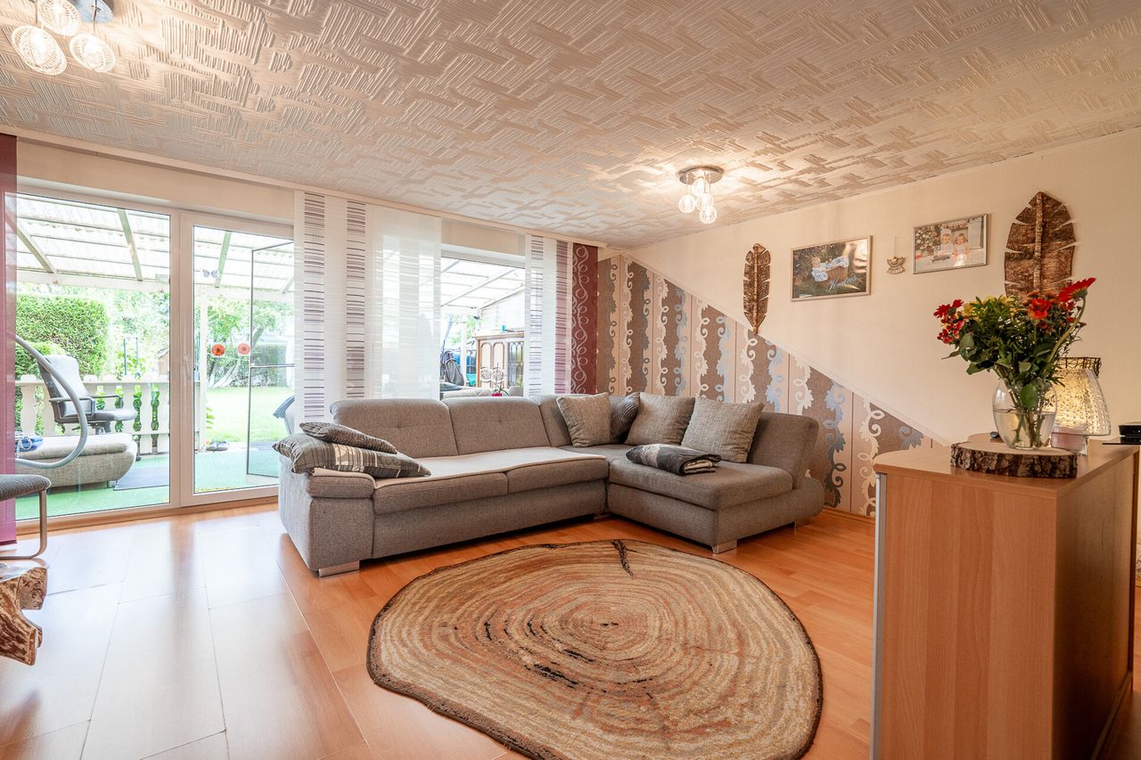 Dieses charmante Reihenmittel aus dem Jahr 1998 liegt in einer ruhigen, gewachsenen Nachbarschaft, in der Kinder noch auf der Straße spielen und man die Nachbarn kennt. Die Lage verbindet Geborgenheit und Privatsphäre mit einer guten Infrastruktur – Schulen, Einkaufsmöglichkeiten und Freizeitangebote sind schnell erreicht, und dennoch fühlt es sich an wie ein Zuhause fernab vom Trubel.