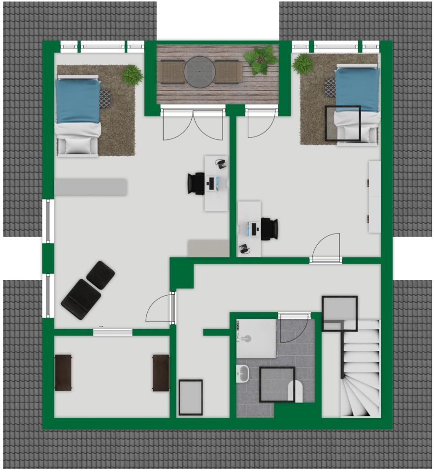 Im Jahr 2011 erfolgte eine umfangreiche Sanierung: das komplette Dach wurde abgetragen und eine neue Etage aufgestockt. Dadurch wurde ein völlig neuer Dachbereich mit Gauben geschaffen. Hierbei entstanden 52,85 m² Wohnfläche im Dachgeschoss, die sich auf zwei Zimmer, einen Flur, ein Bad und eine Loggia mit Siebengebirgsblick verteilen. Zudem gibt es noch einen Bereich, welcher über Küchenanschlüsse verfügt.