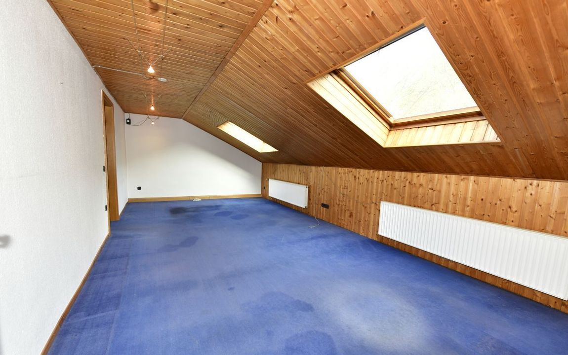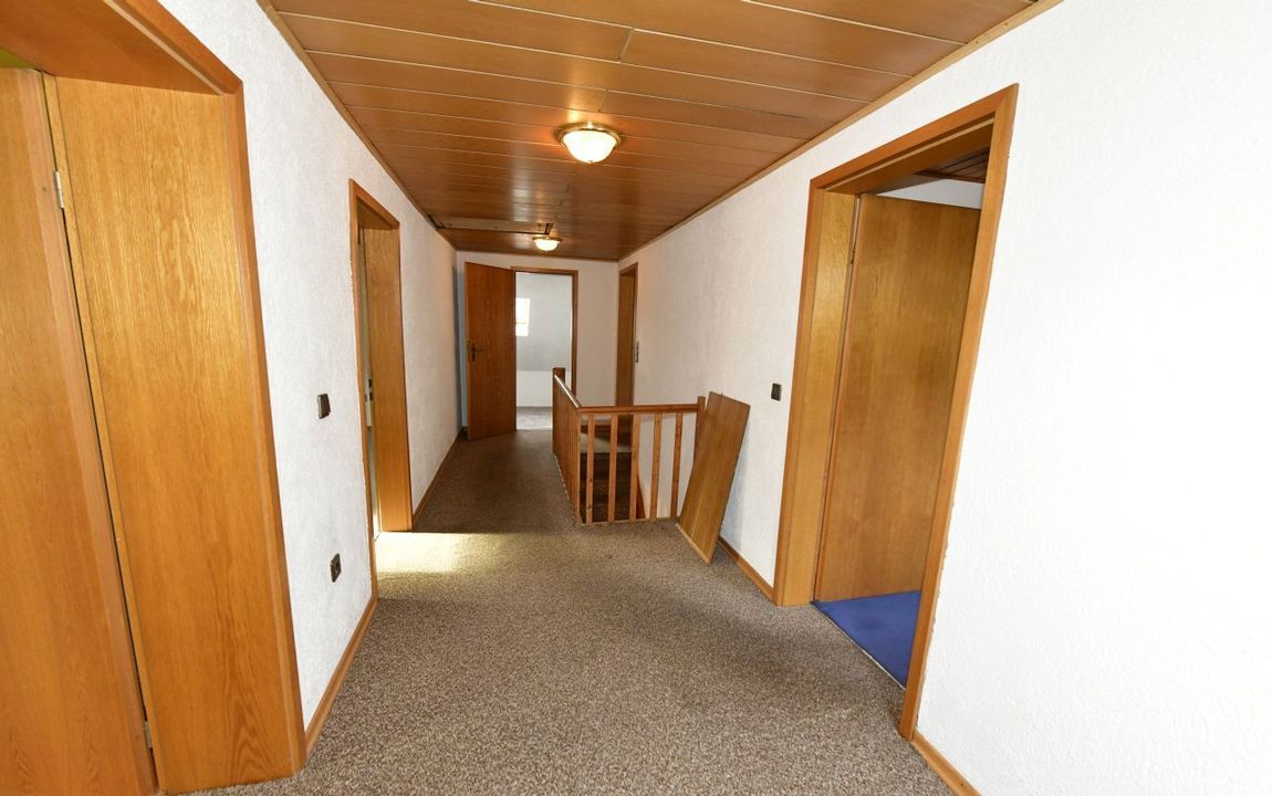 Obergeschoss: Ca. 106,57 m² Flächen, verteilt auf fünf Zimmer, die über eine Geschosstreppe als einläufige, geradläufige Holzkonstruktion mit Holzwangen, Tritt- und Setzstufen in Holz sowie Holzgeländer und Handlauf ausgeführt, erreicht werden.