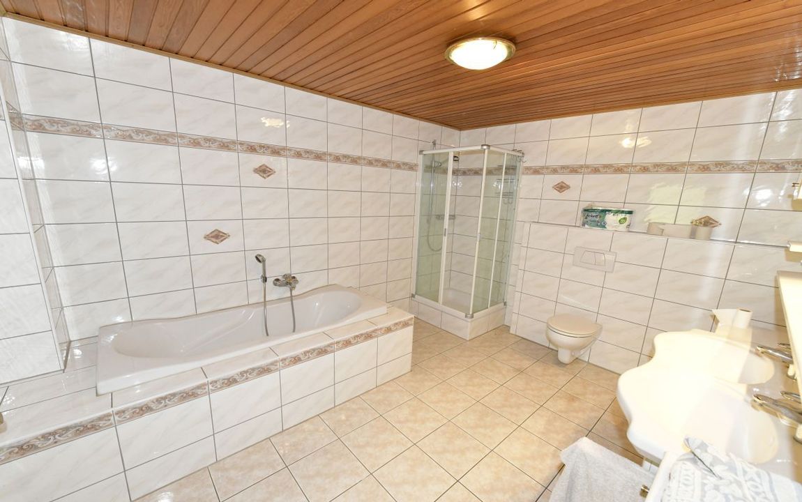 Im Haus befinden sich zwei Badezimmer eines mit Dusche/Badewanne und eines mit Eckbadewanne.