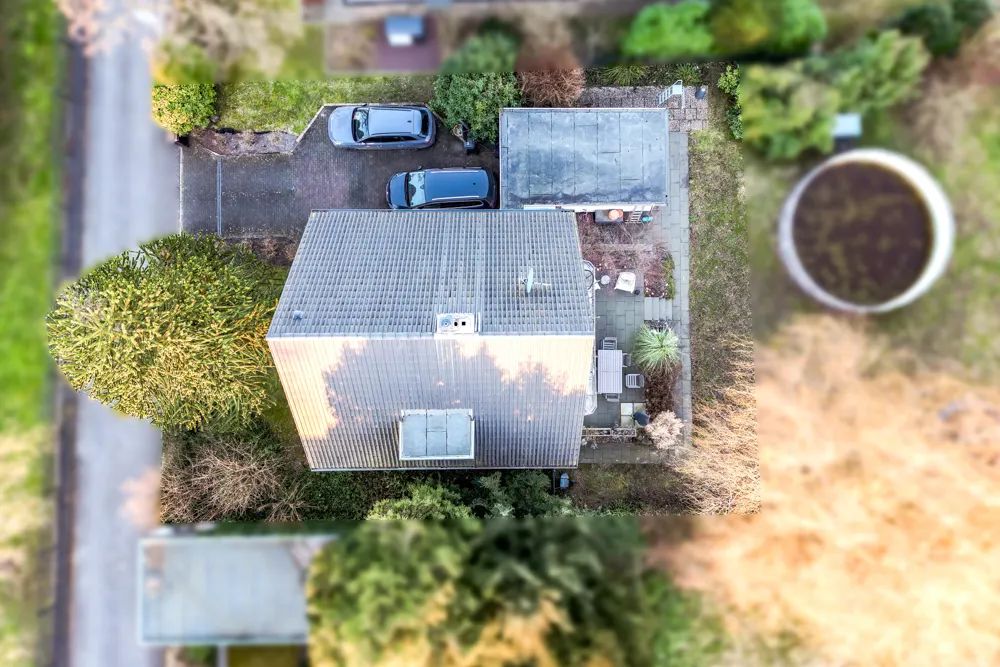 Eine Garage und eine kleine Rasenfläche schließen sich an die Terrasse an und runden den Außenbereich Ihres neuen Zuhauses hervorragend ab. Es ist jedoch wichtig zu erwähnen, dass die Rasenfläche nicht groß ist. Aktuell wird vom Mieter noch eine weitere Parzelle als Garten genutzt (aktuell kein Zaun) – diese wird jedoch separat als Baugrundstück veräußert. Selbstverständlich kann das Baugrundstück auch mit erworben werden.