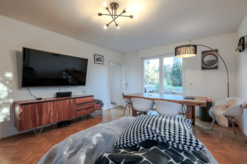 Was für eine Gelegenheit! Dieses charmante Einfamilienhaus wurde erbaut im Jahr 1960 und fortlaufend instandgehalten und modernisiert. 2014 wurden u. a. neue Parkettböden gelegt, das Fischgrätenparkett im Wohnzimmer abgeschliffen und versiegelt, die Fenster, die Dachisolierung, das Bad und das Gäste-WC erneuert.